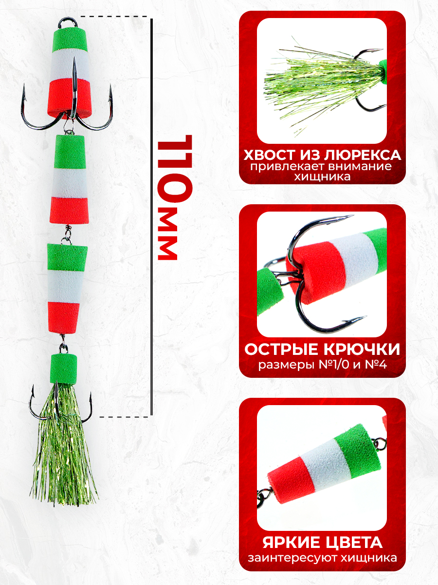 Мандулы-флажок М131 3-х секционная 110мм (3шт) зеленая, белая, красная