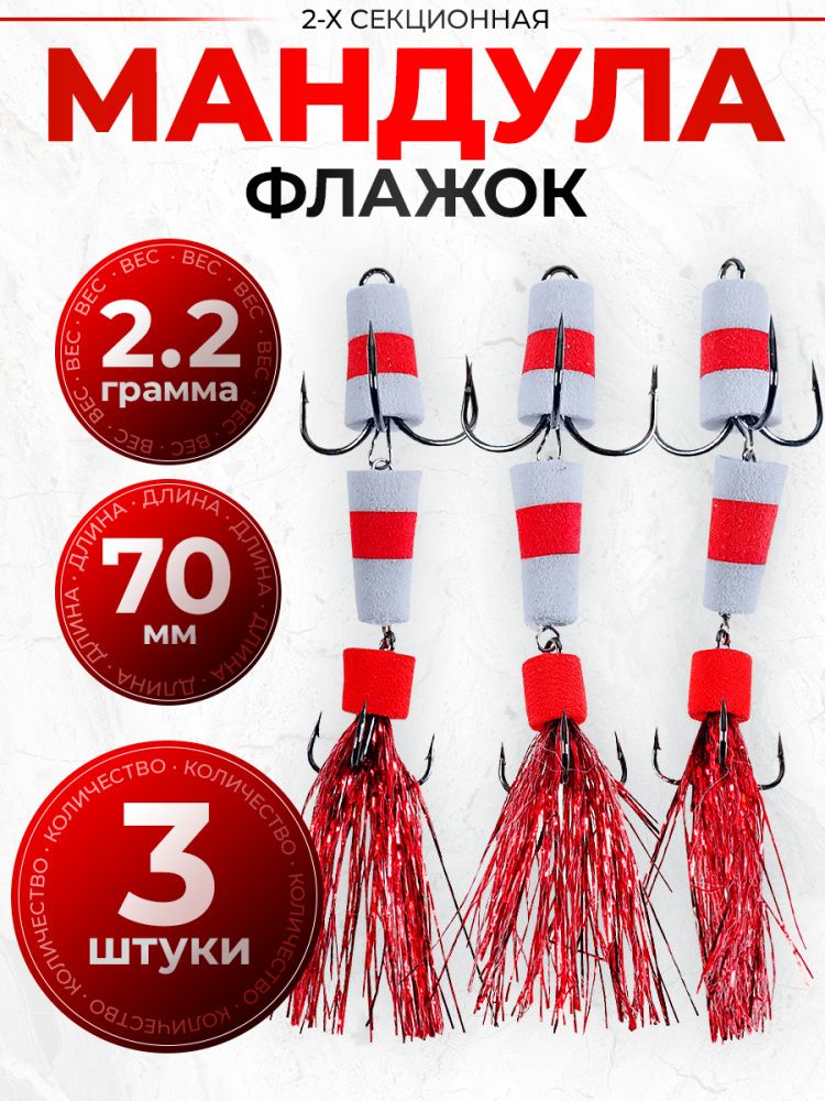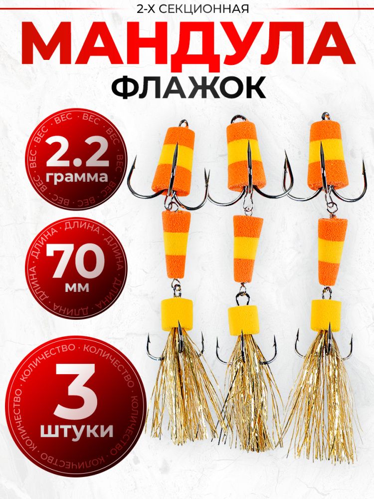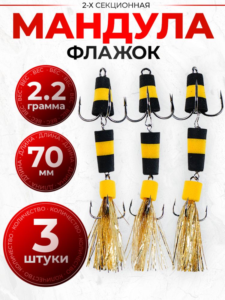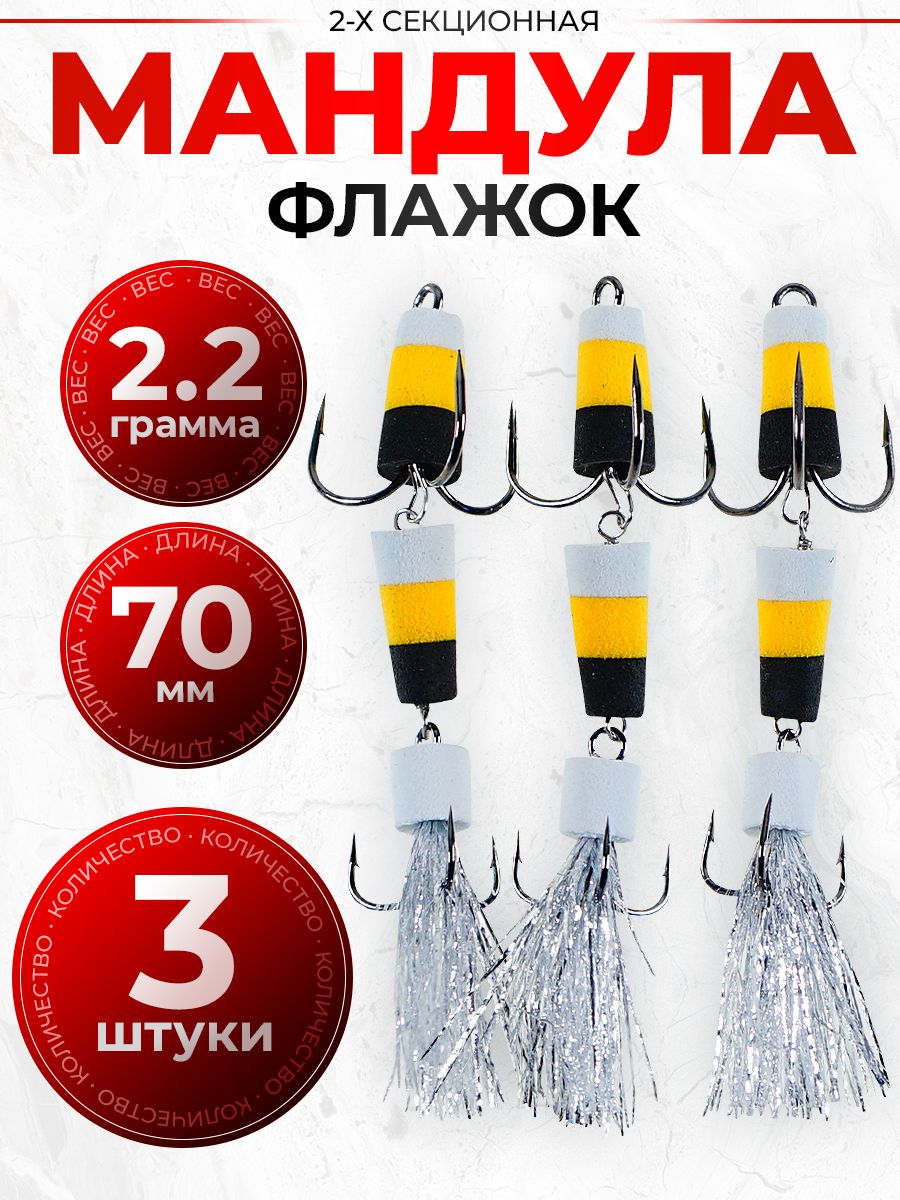 Мандулы-флажок М22 2-х секционная 70мм (3шт) белая, желтая, черная