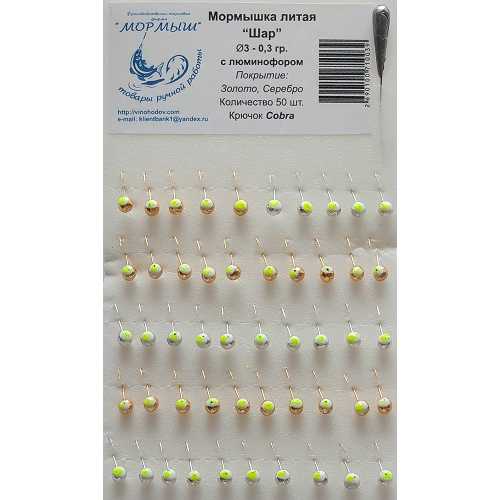 Мормышка литая Шар с люминофором 3мм золотистая