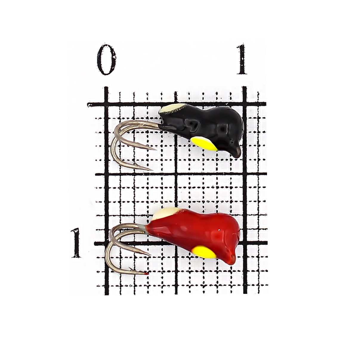 Отличается от классических «муравьев» наличием двойника («козы») и ушка, что дает более цепкий подсек и быстрый монтаж. В сравнении с аналогами из мягких металлов сохраняет меньший размер при том же весе — ключевой плюс при осторожном клеве и в глухозимье.