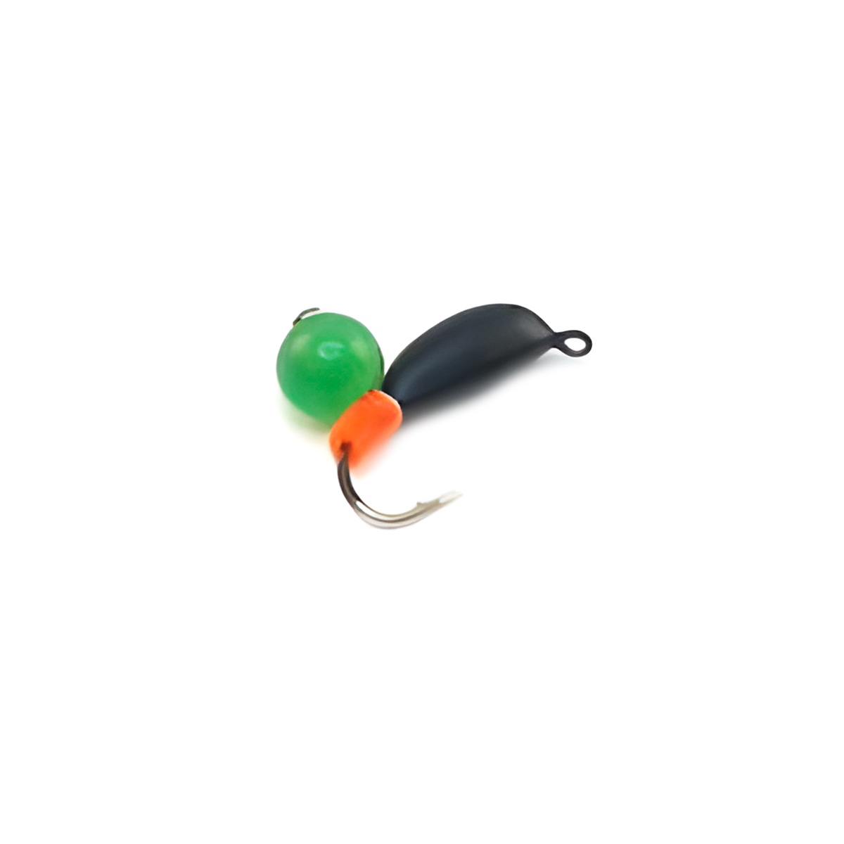 Мормышка вольфрамовая Бадис Банан Рижский с ушком и камнем кошачий глаз 4мм 1,1гр глаз зеленый, черная