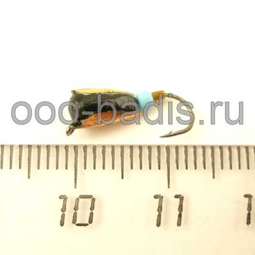 Мормышка вольфрамовая Капля с ушком и 2 коронками 4мм коронка медная, золотистая (ручная работа)