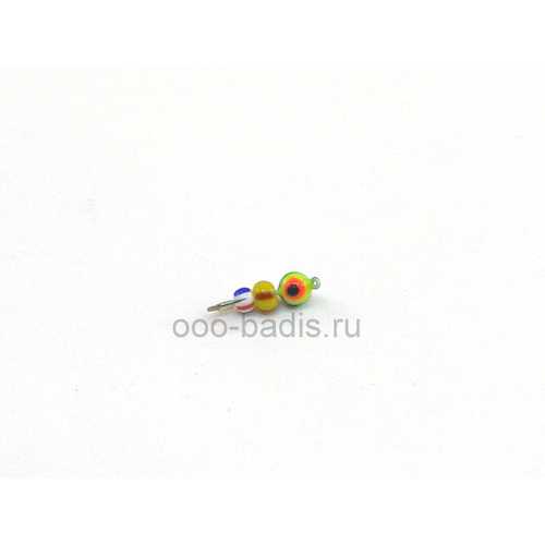 Мормышка вольфрамовая Бадис Шайба с ушком, c 3D глазом, бисером и фосфором 3мм 0,16гр цвет 433P
