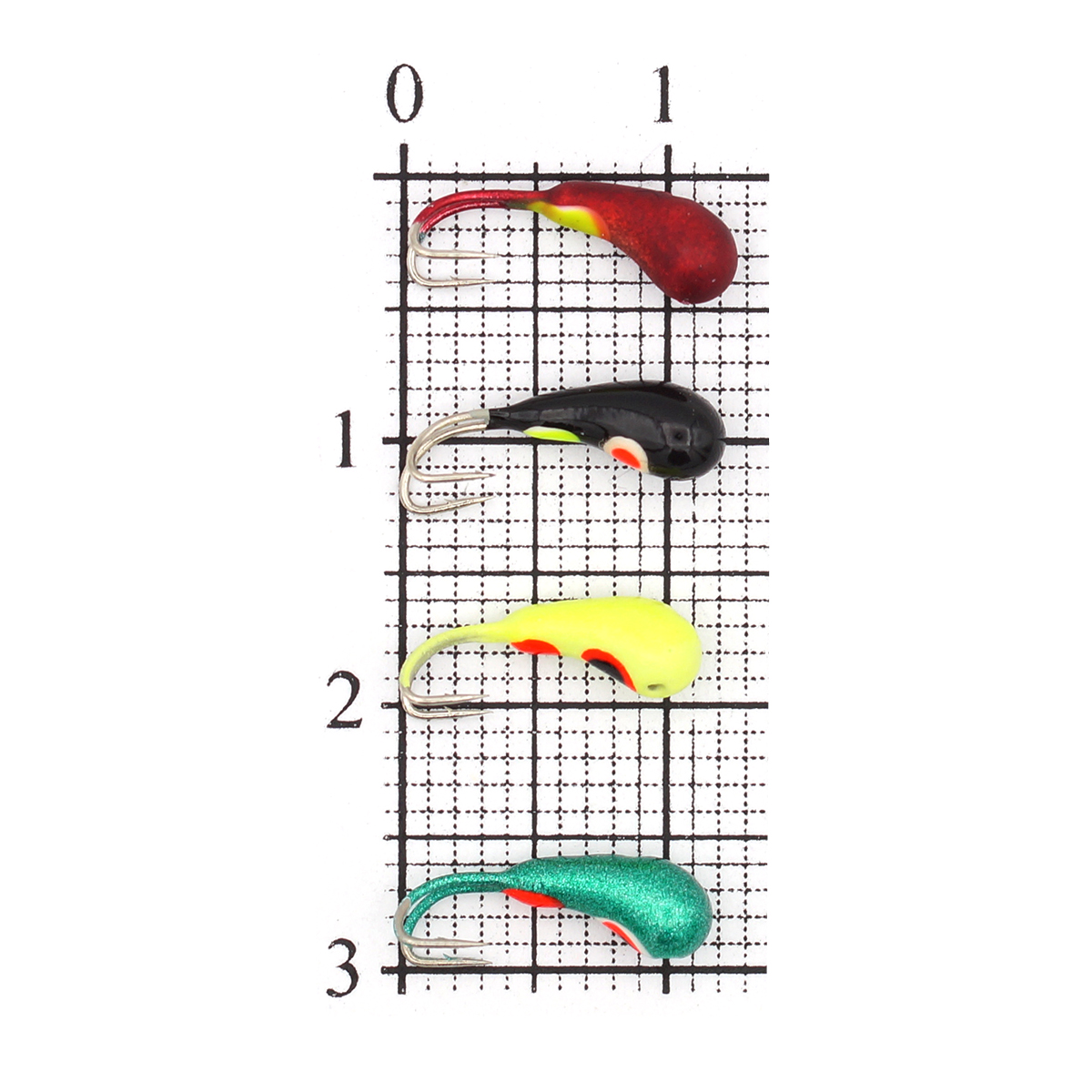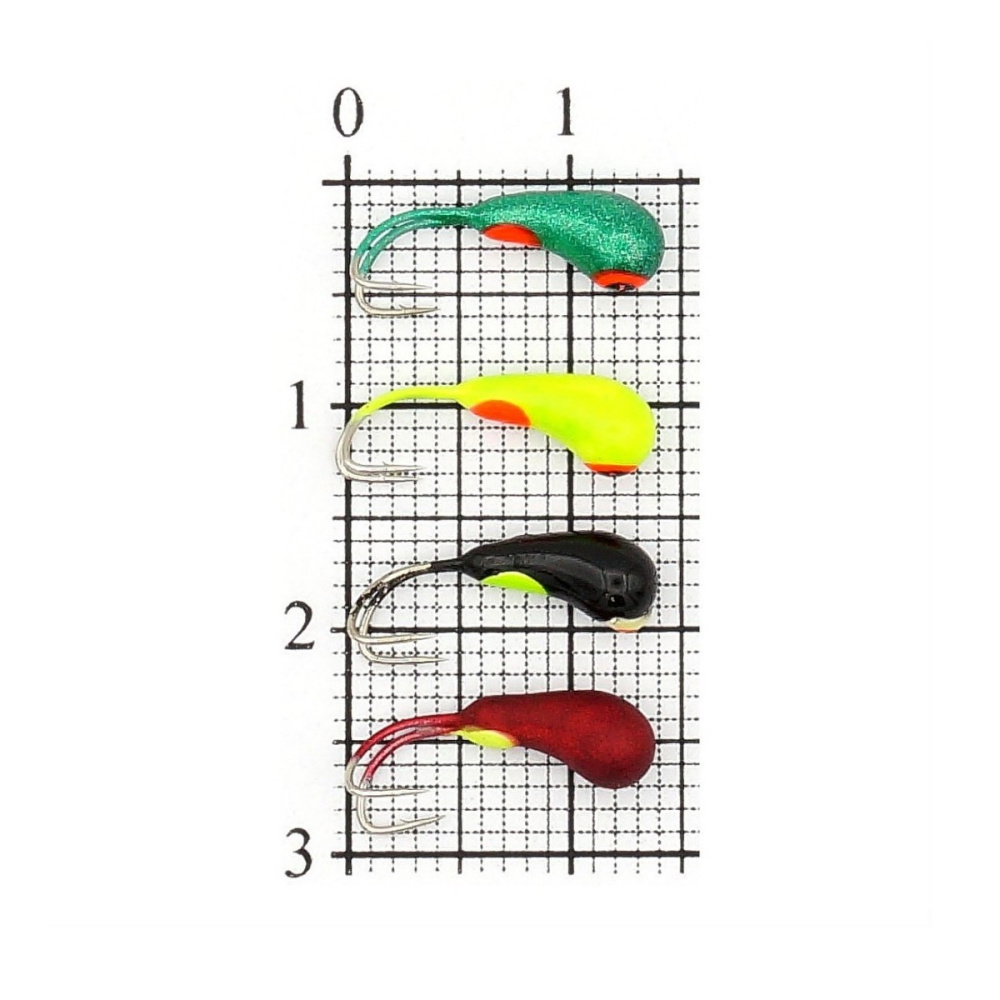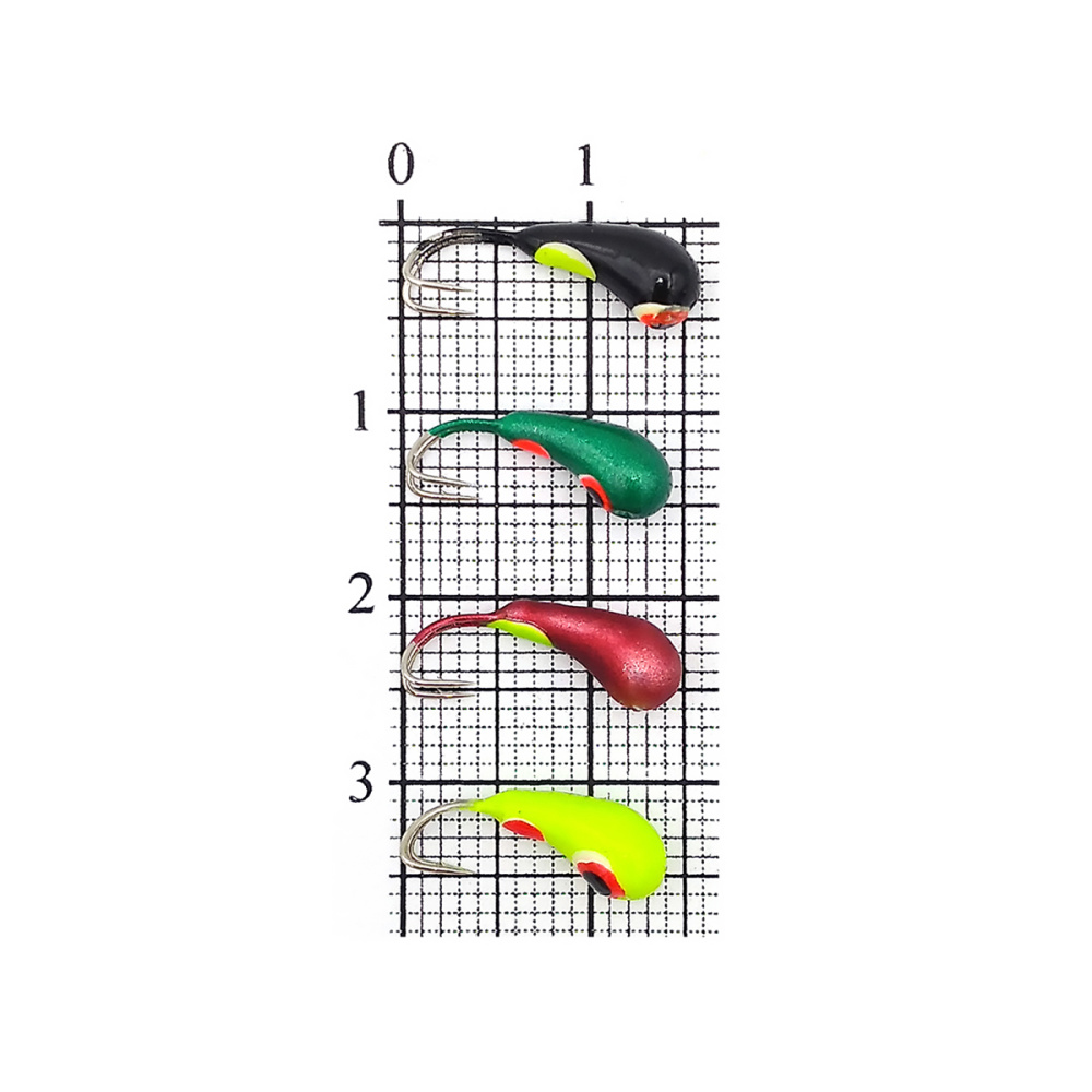 Мормышка вольфрамовая Бадис Чесночинка-коза с отверстием, крашеная 3мм 0,63гр цвет MIX1