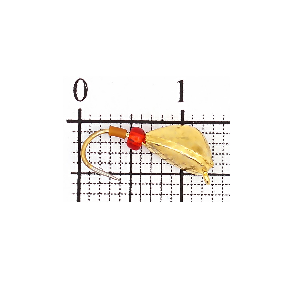 Мормышка вольфрамовая Бадис Мидия с ушком и бисером 4мм 1гр золотистая