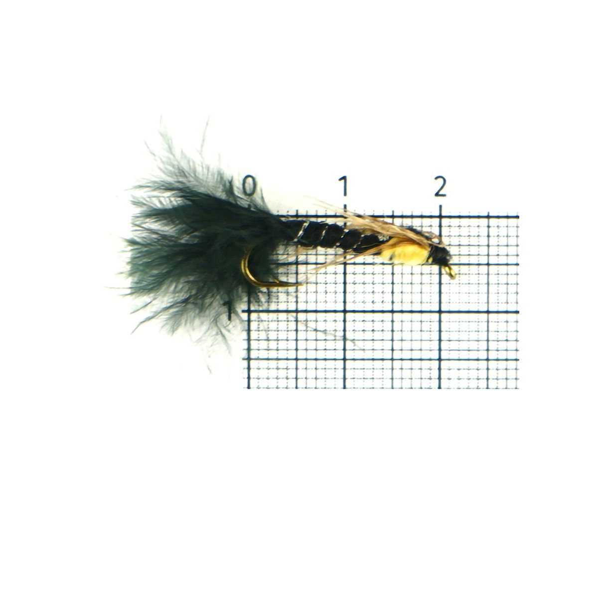 Создана для имитации личинки хирономида и стабильно работает на водоёмах со стоячей водой. Серебристый шарик на голове быстро погружает приманку и задаёт привлекательные блики, а контрастный чёрный корпус остаётся заметным даже при слабом освещении. Можно вести как одиночную муху на малых водоёмах или включать в «команду» при ловле на больших акваториях, чтобы быстрее подобрать активный горизонт и скорость подачи.
