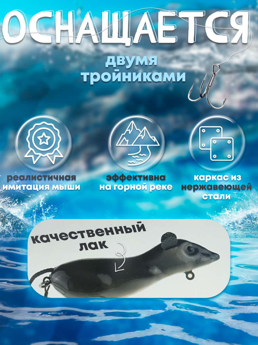 Мышь "Мышара-лак" искусственная рыболовная приманка изготовлена и протестирована сибирскими рыболовами. Выпускается в черной и серой расцветке и разных размерных характеристиках.