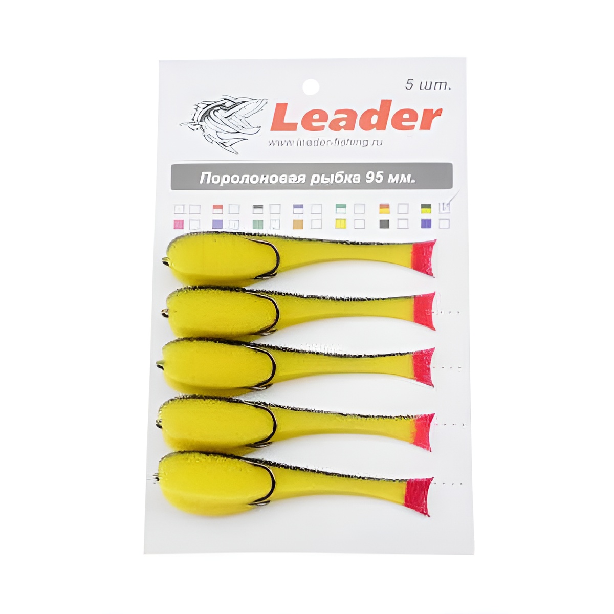 Поролоновые рыбки “Leader” оснащены качественными двойными крючками производства Кореи. Жала двойника плотно прижаты к телу рыбки, что, фактически, делает её незацепляйкой, но при этом очень хорошо засекает рыбу. В моделях с пометкой UV применена специальная флуорисцентная окраска, которая позволяют сделать рыбку более заметной для хищника в условиях плохой освещенности: ранним утром, на закате или в пасмурный день, в мутной воде и на больших глубинах.
