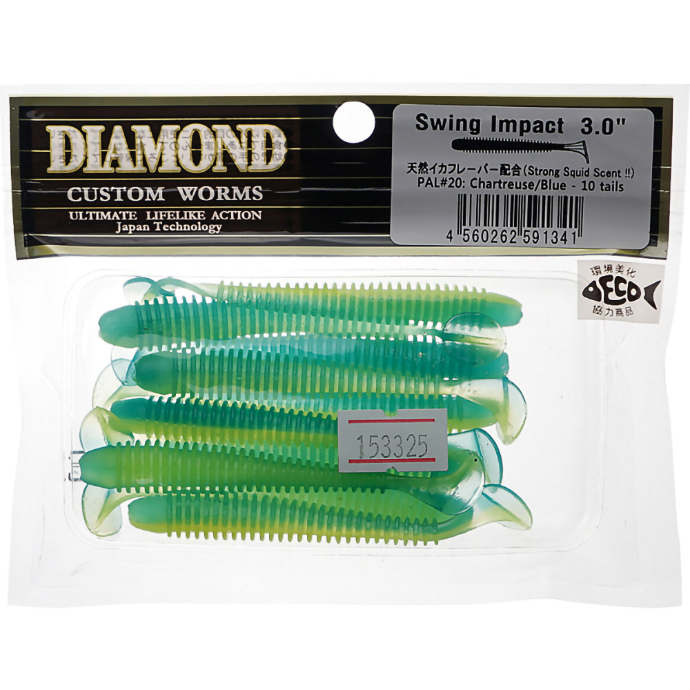 Виброхвосты съедобные Diamond Swing Impact 4" 10см цвет PAL32 (6шт)