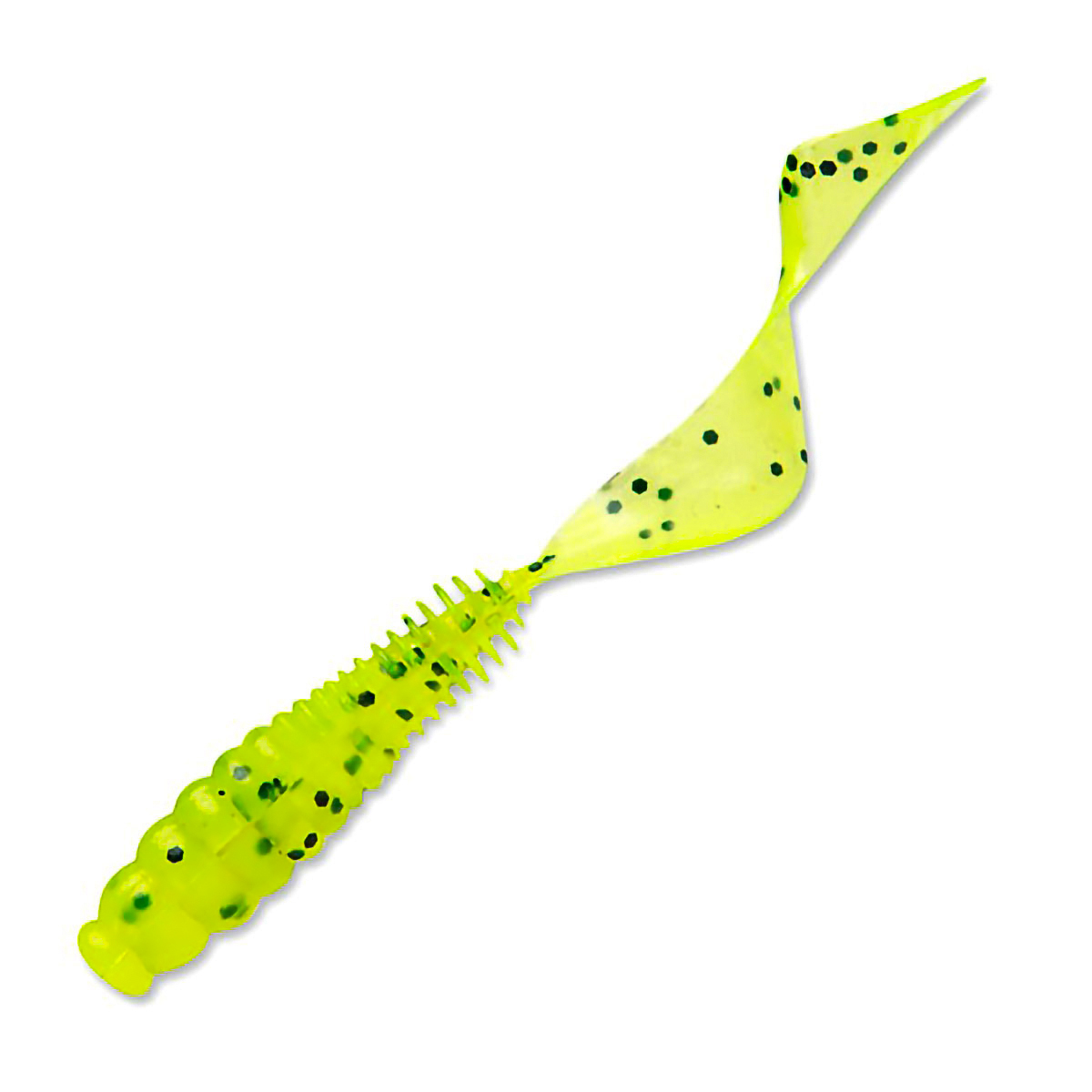 Продуманы пропорции тела приманки, одинаково удачно сочетающиеся и с небольшими двойниками и крючками офсетного типа. Спереди она выглядит как личинка, постепенно переходя в тонкую ребристость предхвостовой части.