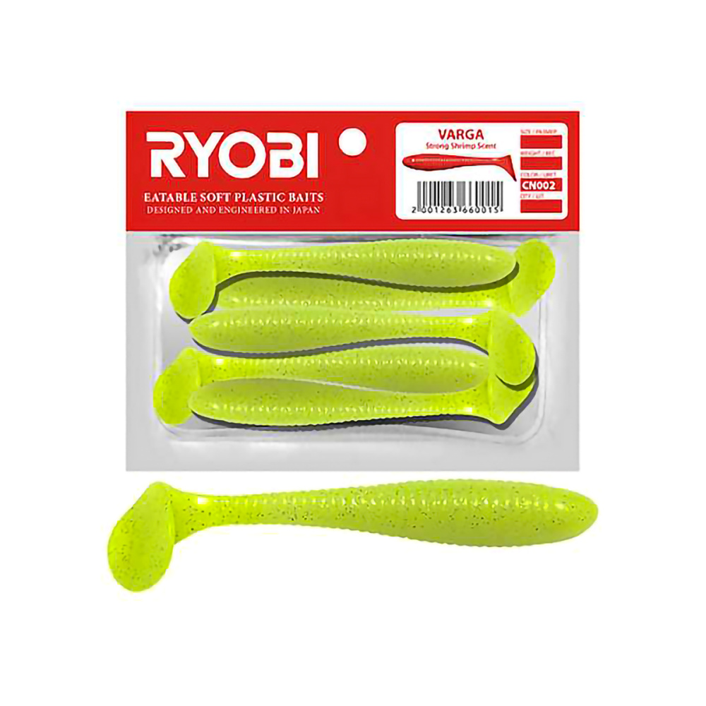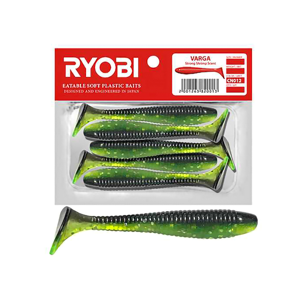 Виброхвосты съедобные Ryobi Varga 9,6см цвет CN001 (white night) (4шт)