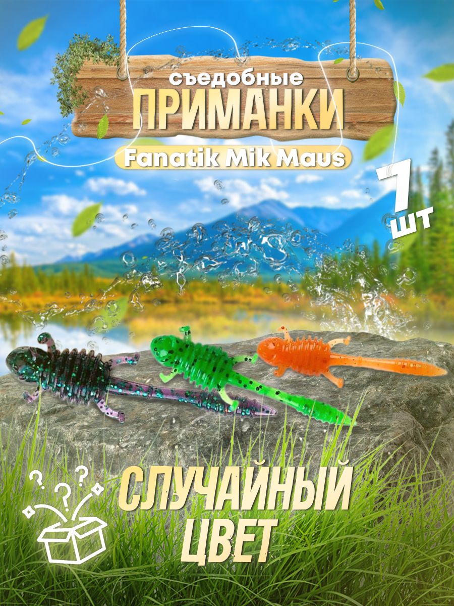 Приманки съедобные Fanatik Mik Maus Мышь 3" 7,62см цвет в ассортименте (7шт)