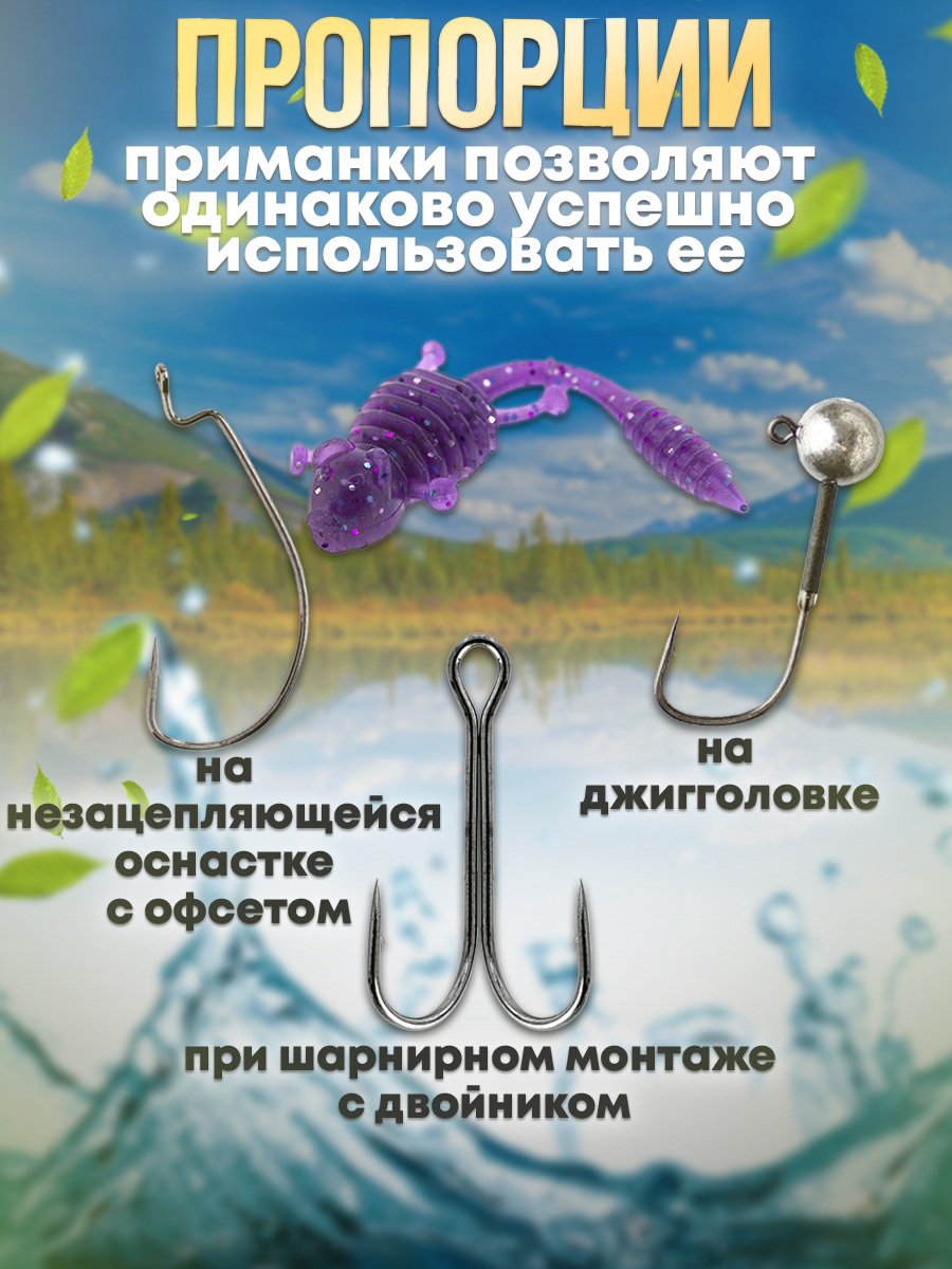 Мик Маус превосходно работает на простой придонной проводке с подрывами и паузами, привлекает хищника и при волочении по грунту. Пропорции приманки позволяют одинаково успешно использовать ее на джигголовке, шарнирном монтаже с двойником или в незацепляющейся оснастке с офсетом.