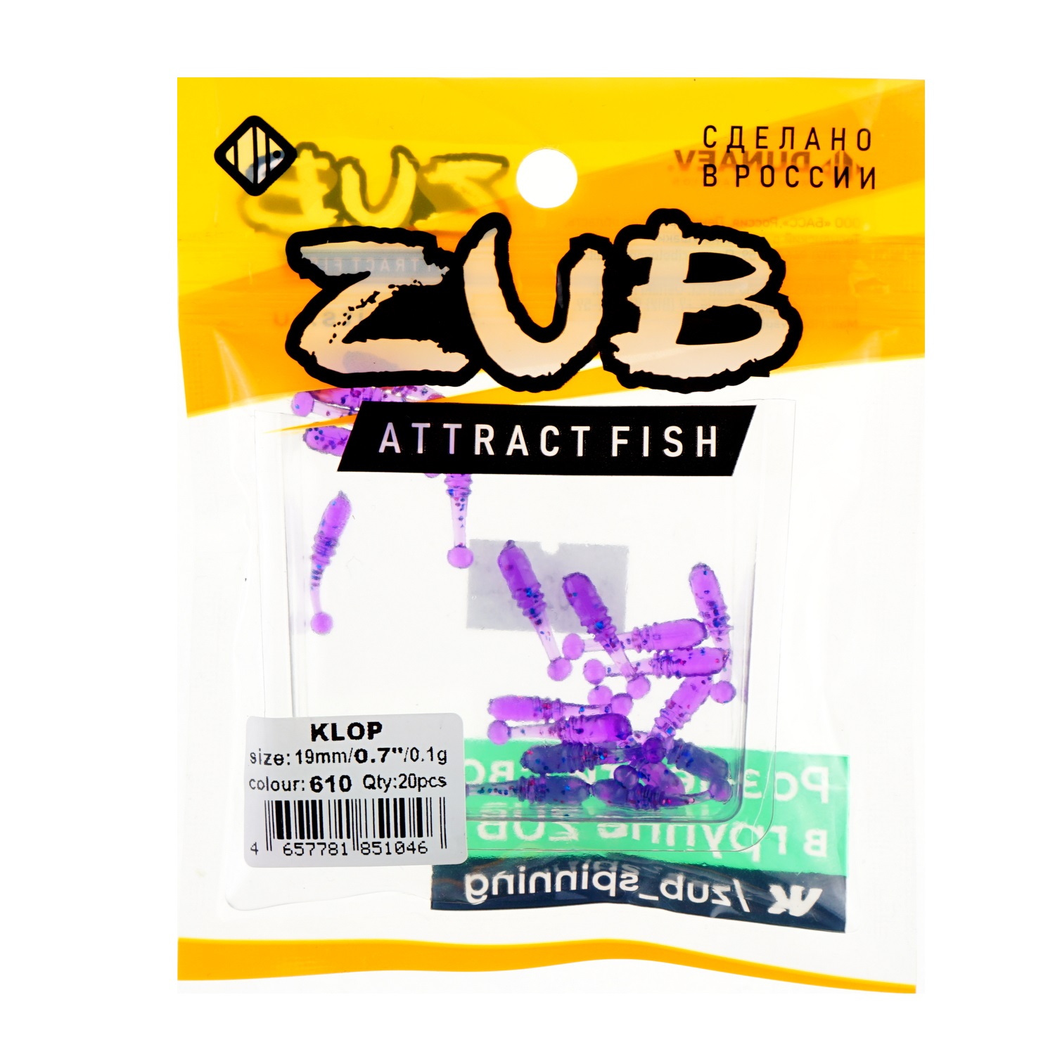 Слаги съедобные Zub Klop 1,9см цвет 610 (фиолетовый, с блестками) (20шт)