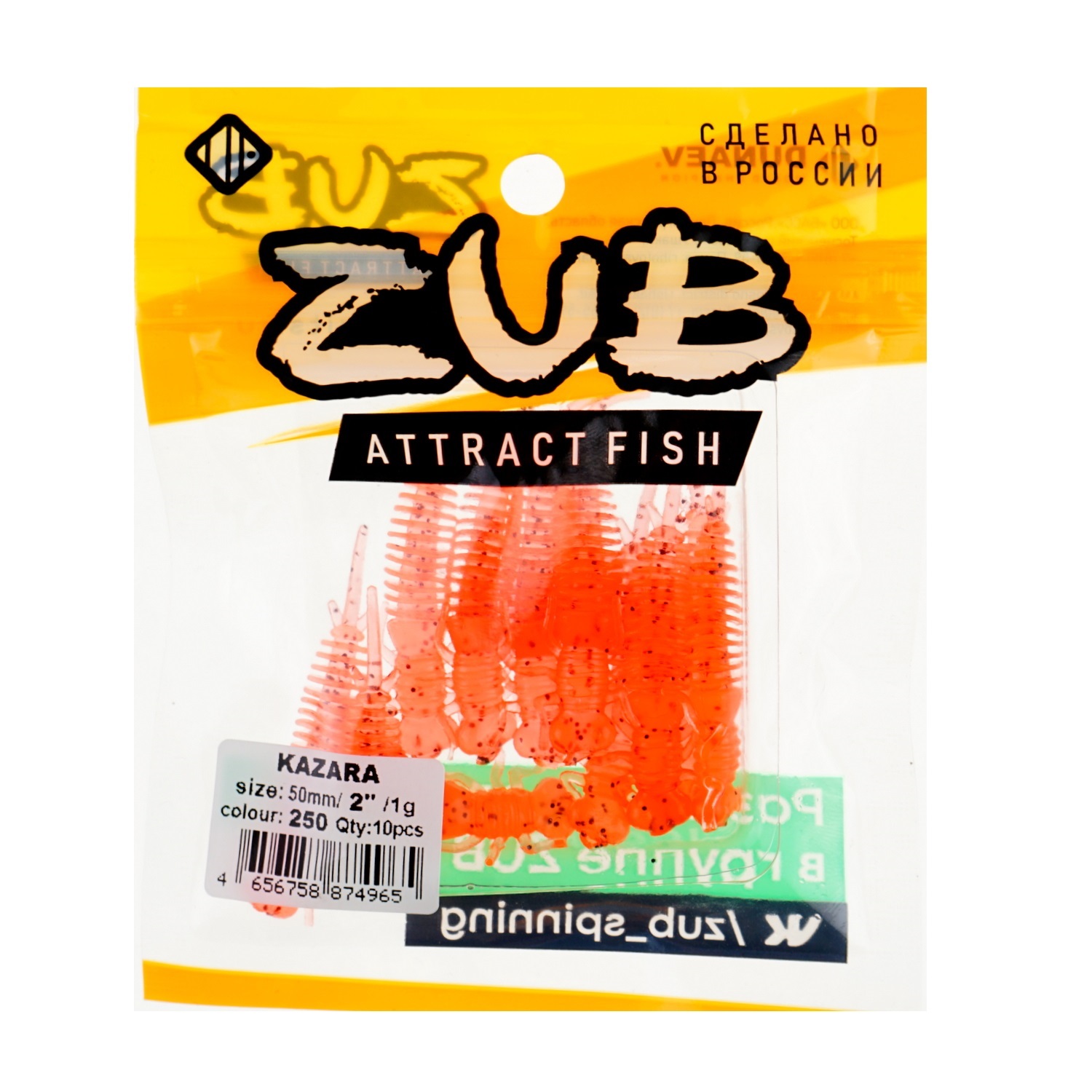 Приманки съедобные Zub Kazara (личинка стрекозы) 5см цвет 250 (морковный, с блестками) (10шт)