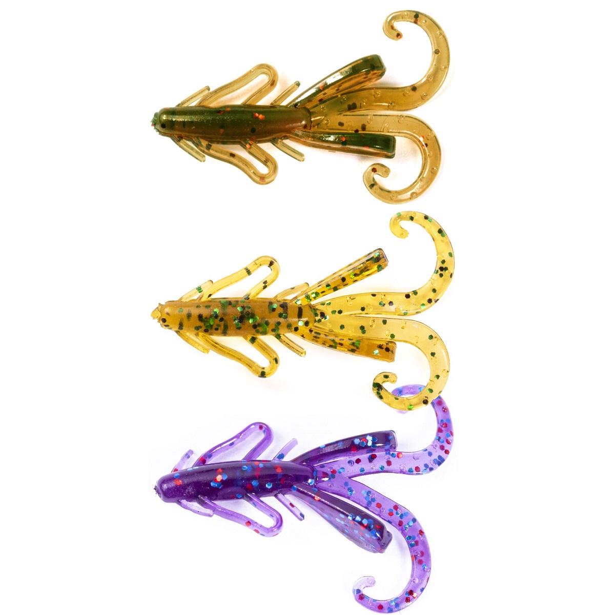Фантазийная приманка рачка имеет явный креветочный или рачий вкус и запах и представлена в нескольких цветовых решениях. Наиболее универсальными для ловли окуня можно считать следующие расцветки: Cola (PA16), Green Pumpkin (PA03) и Mr. Brown (PA17). Для ловли форели выпускается специальная серия с провоци- рующими расцветками: Pink Troutino (052) и Bubblegum (031).