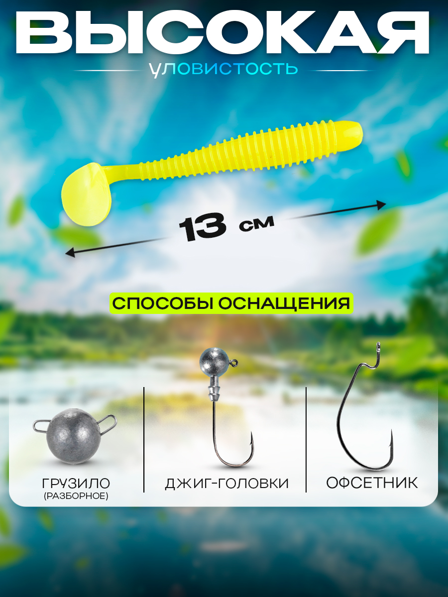 Виброхвосты Relax Texas 5" 13см цвет S055 (желтый) (5шт) (TX5)