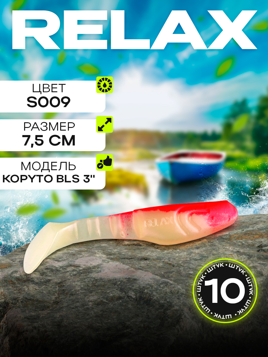 Виброхвосты Relax Kopyto BLS 3" 7,5см цвет S009 (перламутровый, красный) (10шт) (BLS3)