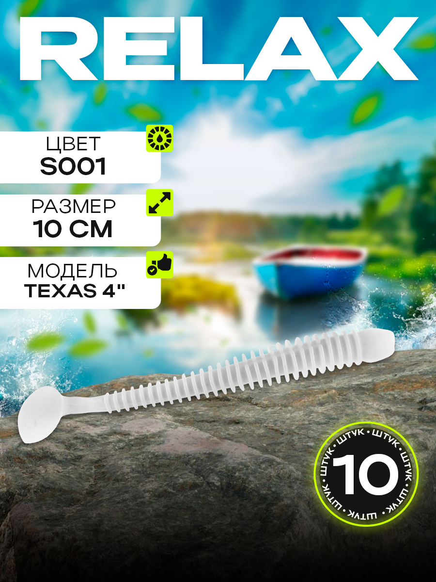 Виброхвосты Relax Texas 4" 10см цвет S001 (белый) (10шт) (TX4)