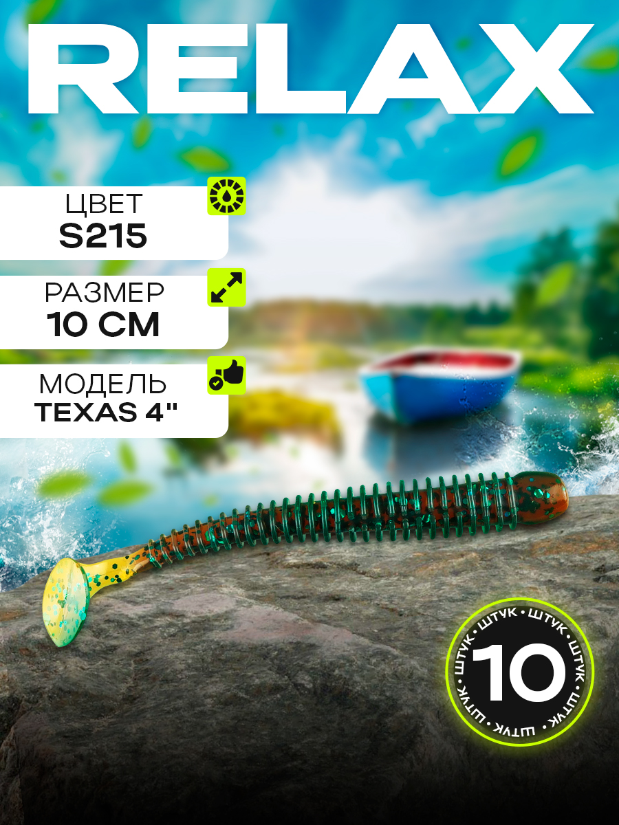 Виброхвосты Relax Texas 4" 10см цвет S215 (моторное масло, зеленые блестки) (10шт) (TX4)