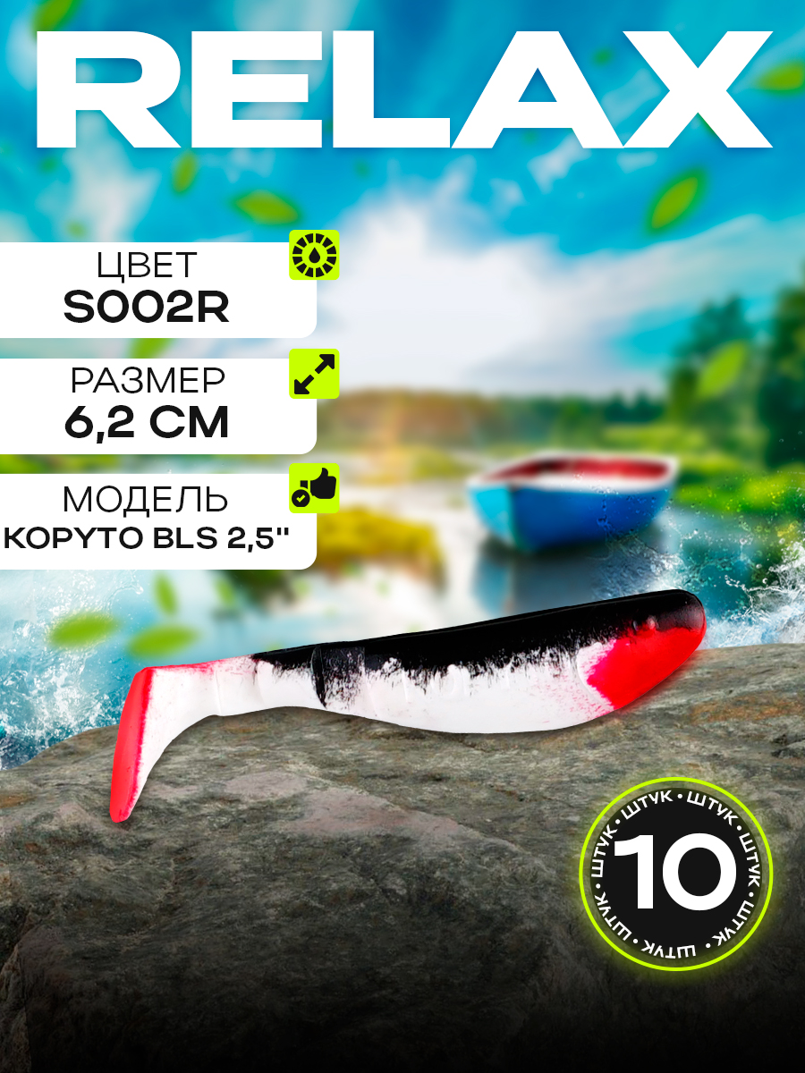 Виброхвосты Relax Kopyto BLS 2.5" 6,2см цвет S002R(O) (белый, черный, красный) (10шт) (BLS25)
