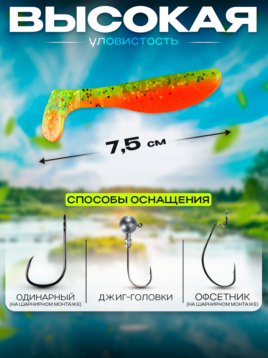 Виброхвосты Relax Kopyto BLS 3" 7,5см цвет L354 (оранжевый, зеленый, с блестками) (10шт) (BLS3)
