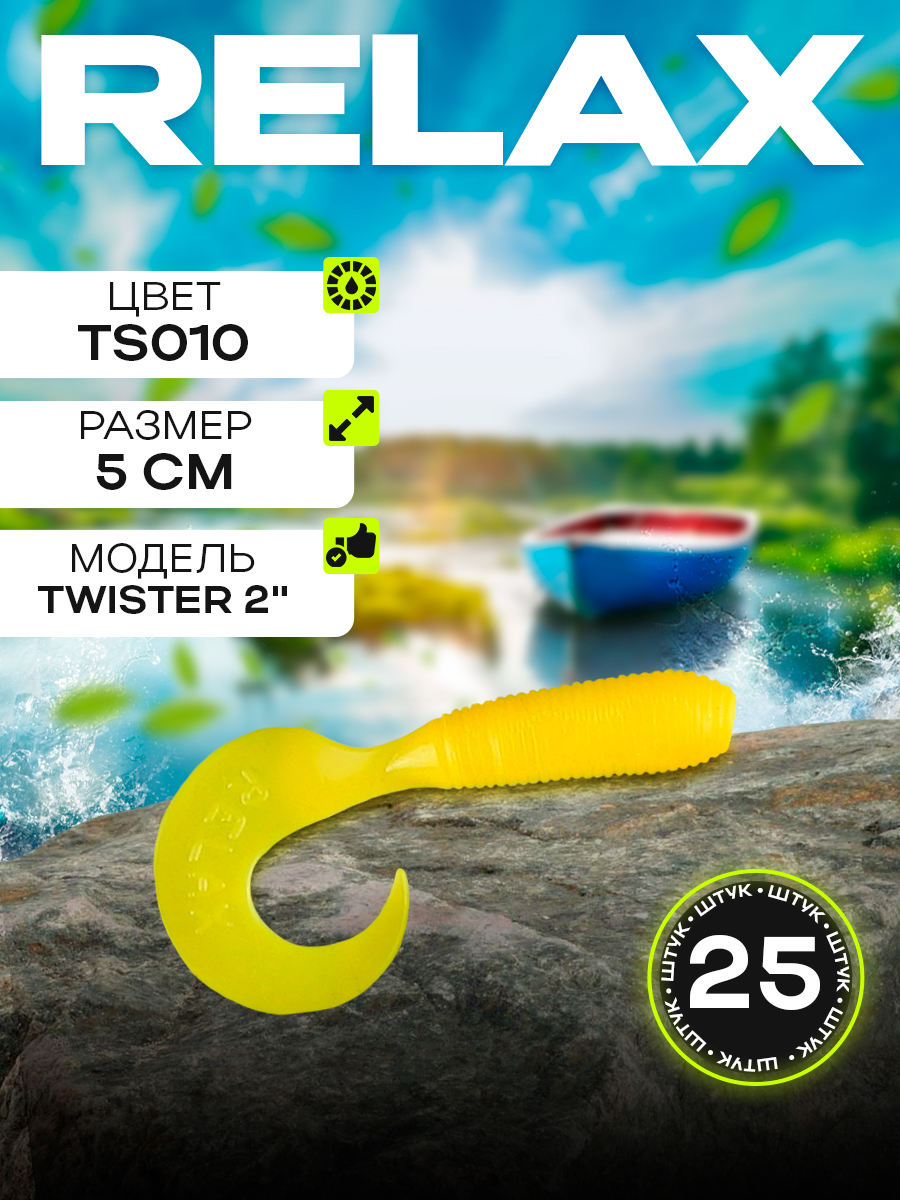 Твистеры Relax 2" 5см цвет TS010 (желтый) (25шт) (VR2)