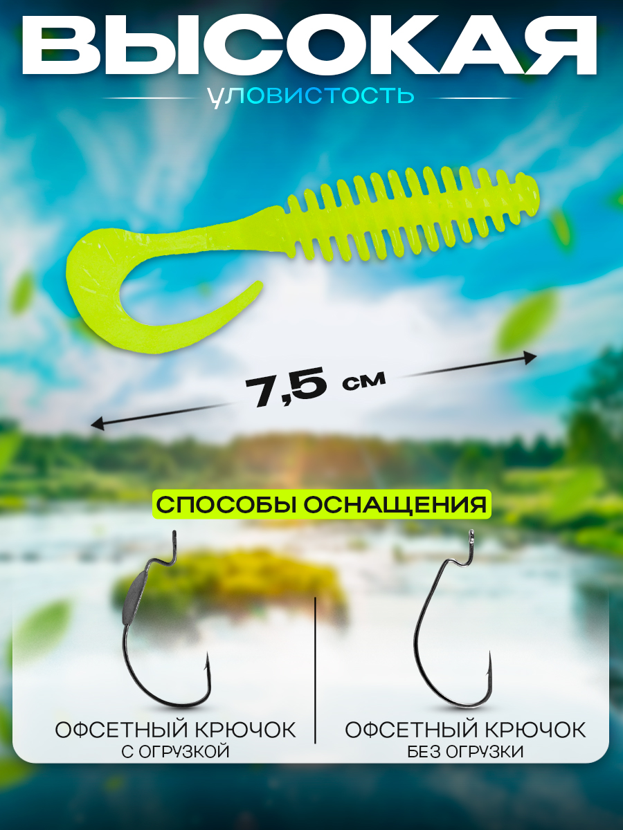 Твистеры Relax Turbo 3" 7,5см цвет TS011 (салатовый) (15шт) (TRT3)
