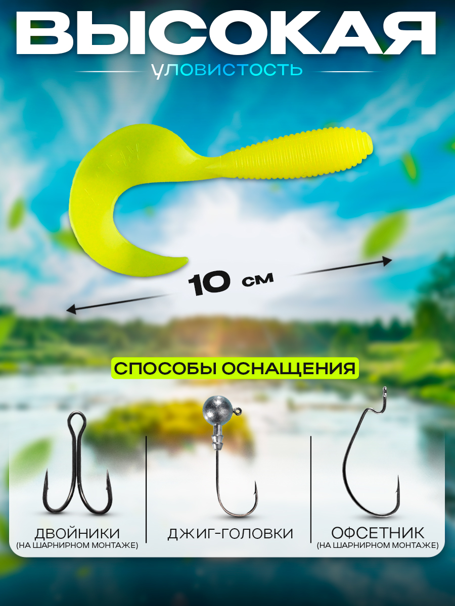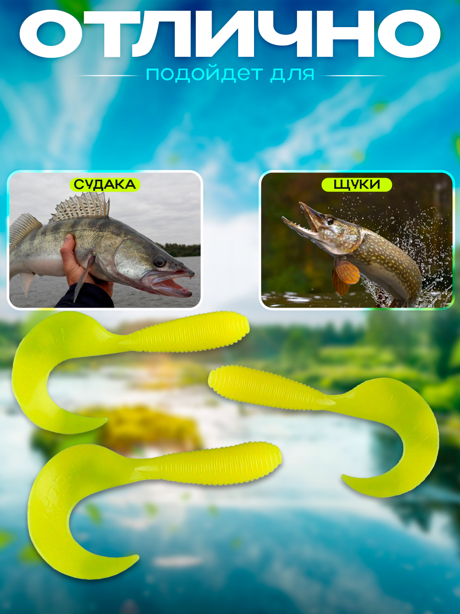 Твистеры Relax 4" 10см цвет TS011 (салатовый) (10шт) (VR4)