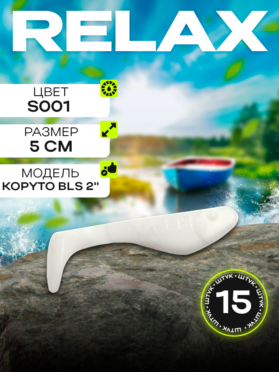 Виброхвосты Relax Kopyto BLS 2" 5см цвет S001 (белый) (15шт) (BLS2)