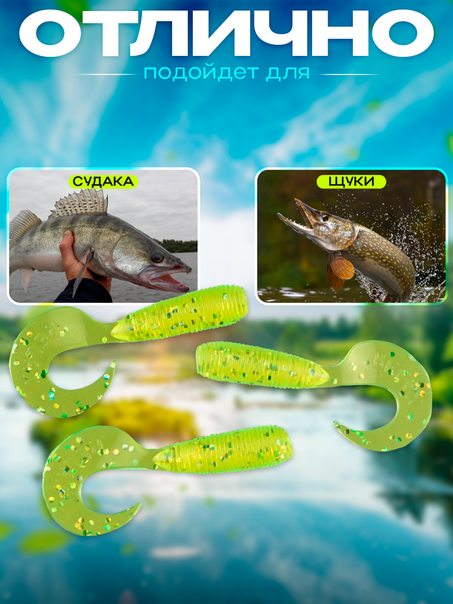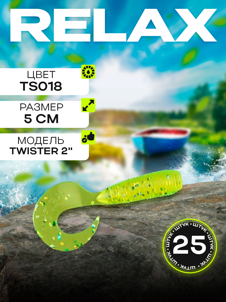 Твистеры Relax 2" 5см цвет TS018 (салатовый, с блестками) (25шт) (VR2)