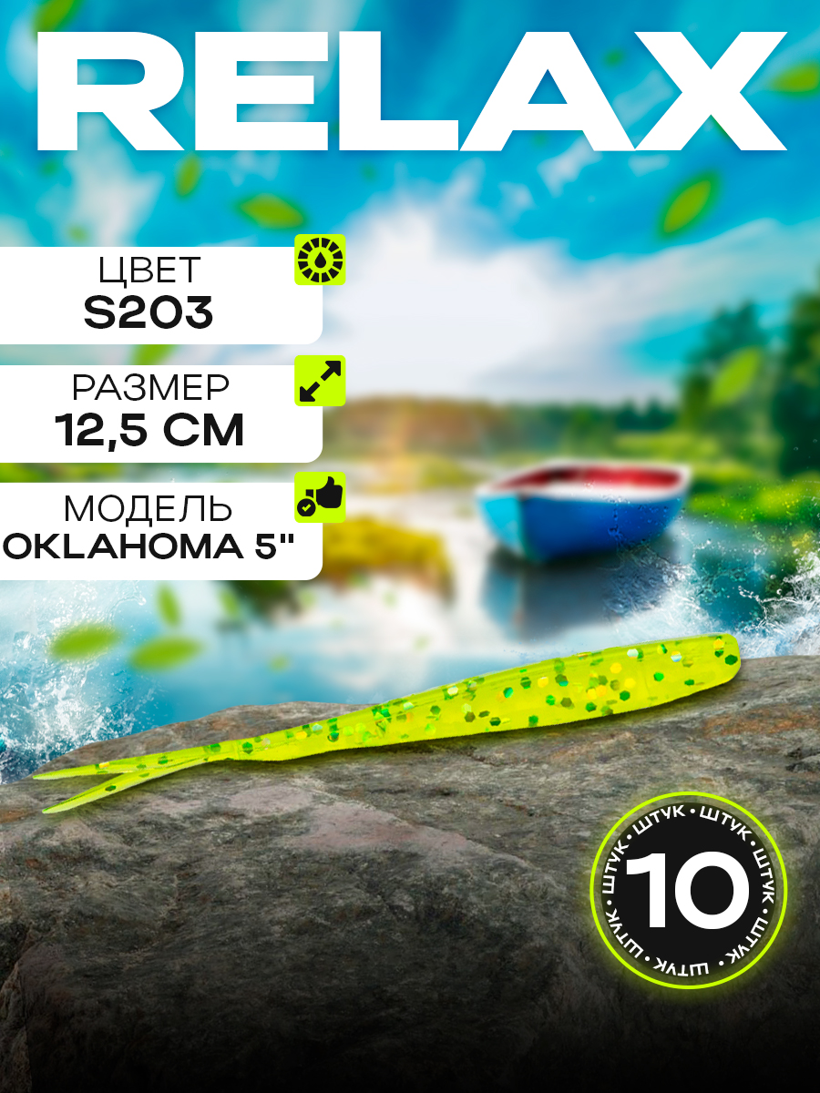 Слаги Relax Oklahoma 5" 12,5см цвет S203 (желтый, зеленые блестки) (10шт) (OKL5)