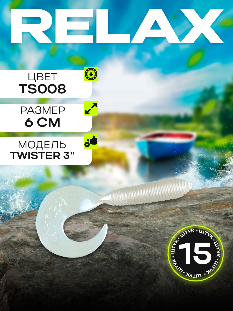 Твистеры Relax 3" 6см цвет TS008 (перламутровый) (15шт) (VR3)