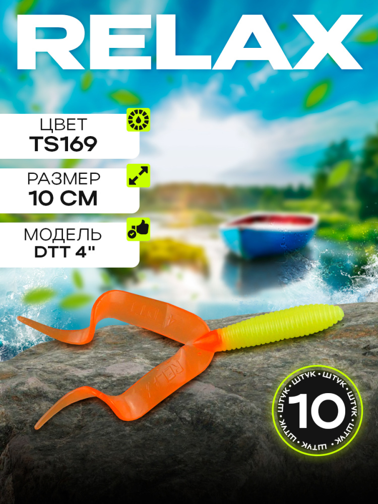 Твистер Relax DTT 2" 4,5см цвет TS053 (красный, желтый) (красный, желтый хвост) (DTT2)