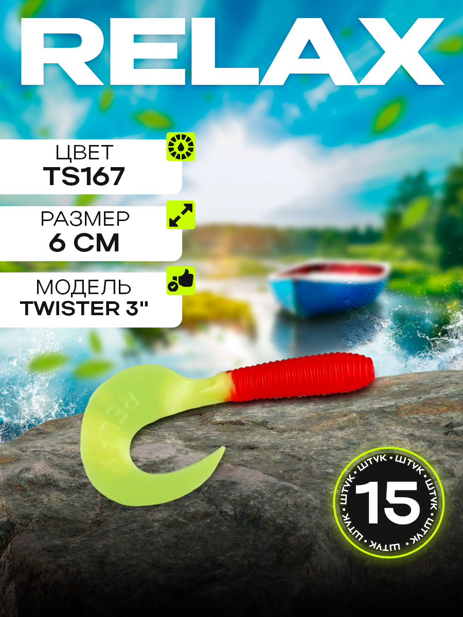 Твистеры Relax 3" 6см цвет TS167 (красный, желтый) (15шт) (VR3)