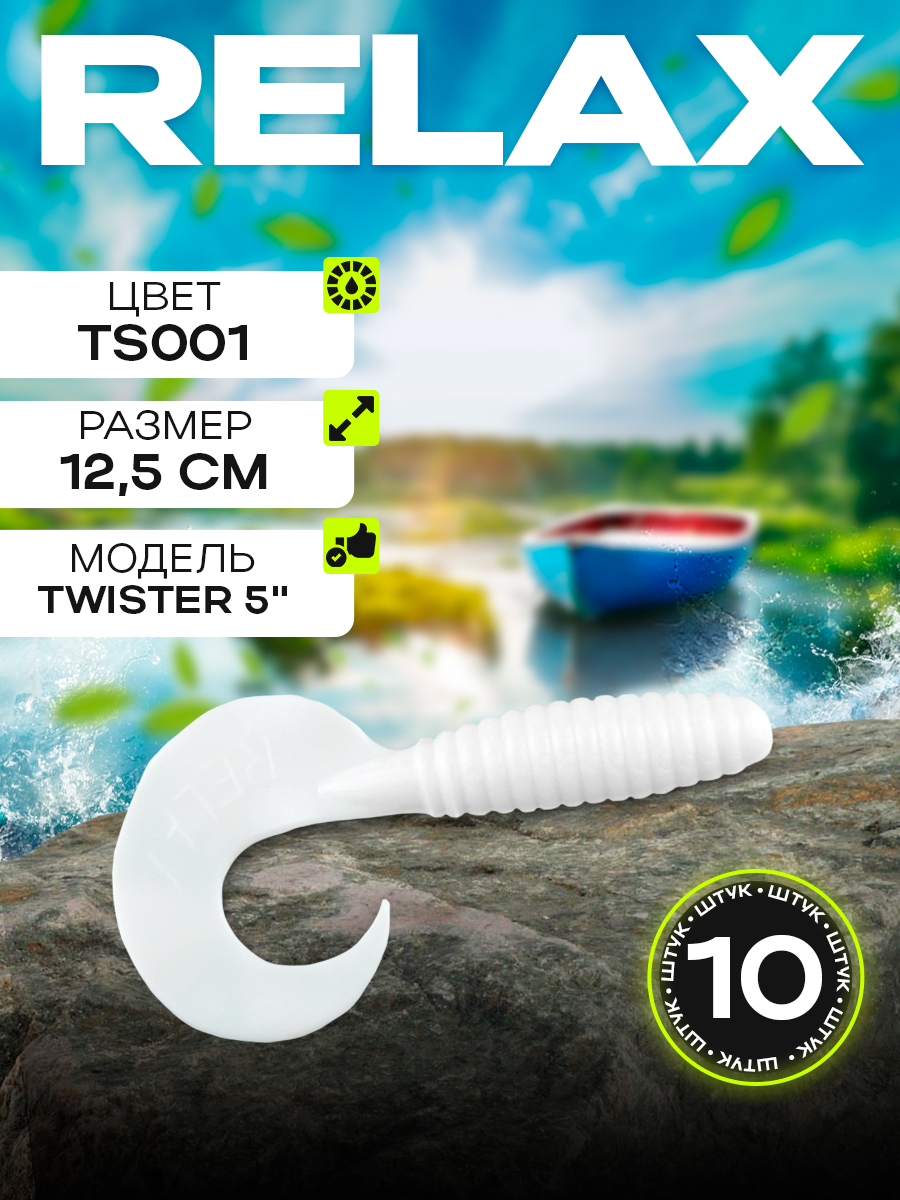Твистеры Relax 5" 12,5см цвет TS001 (белый) (10шт) (VR5)