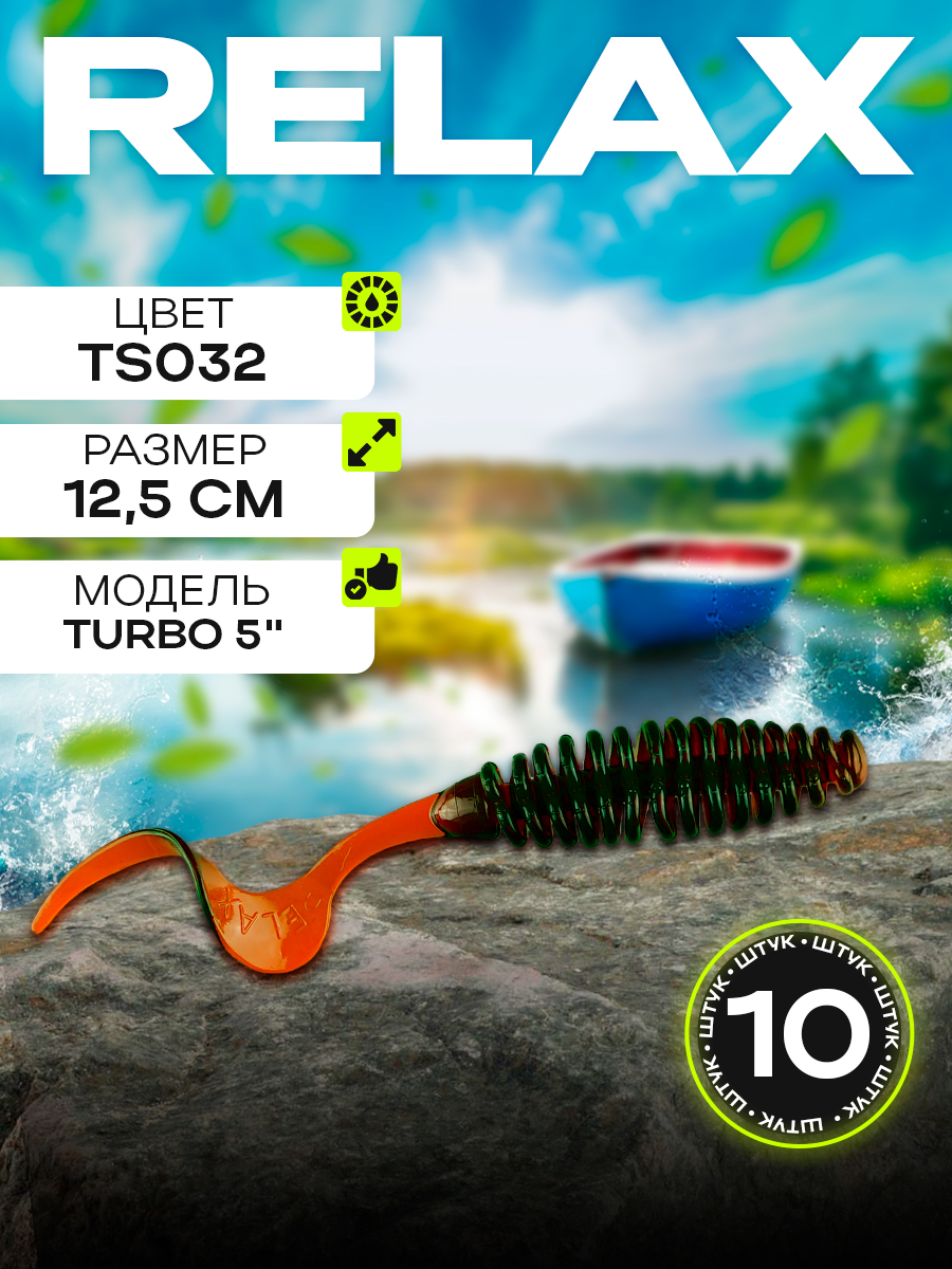 Твистеры Relax Turbo 5" 12см цвет TS032 (машинное масло) (10шт) (TRT5)