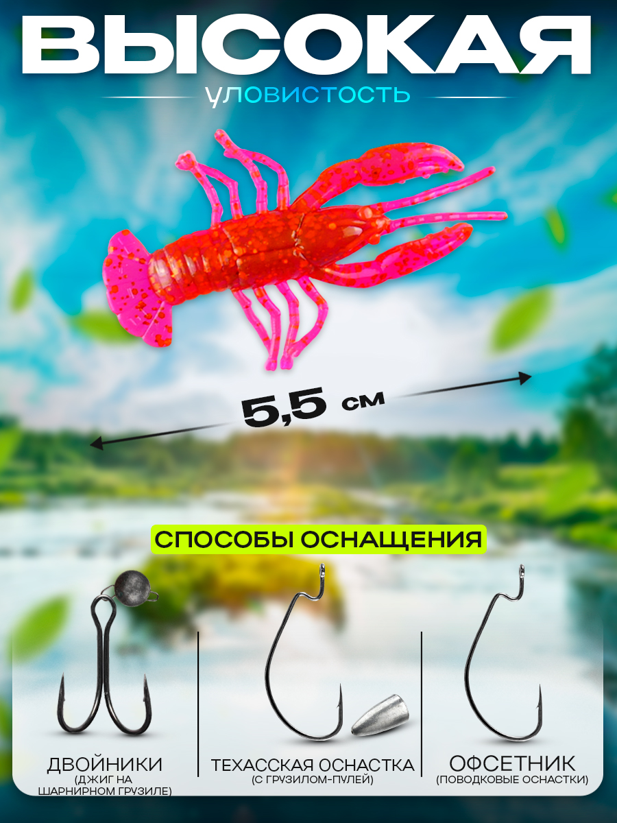 Приманки Relax Crawfish (рачок) 2" 5,5см цвет S340 (малиновый, красные блестки) (10шт) (CRF2)