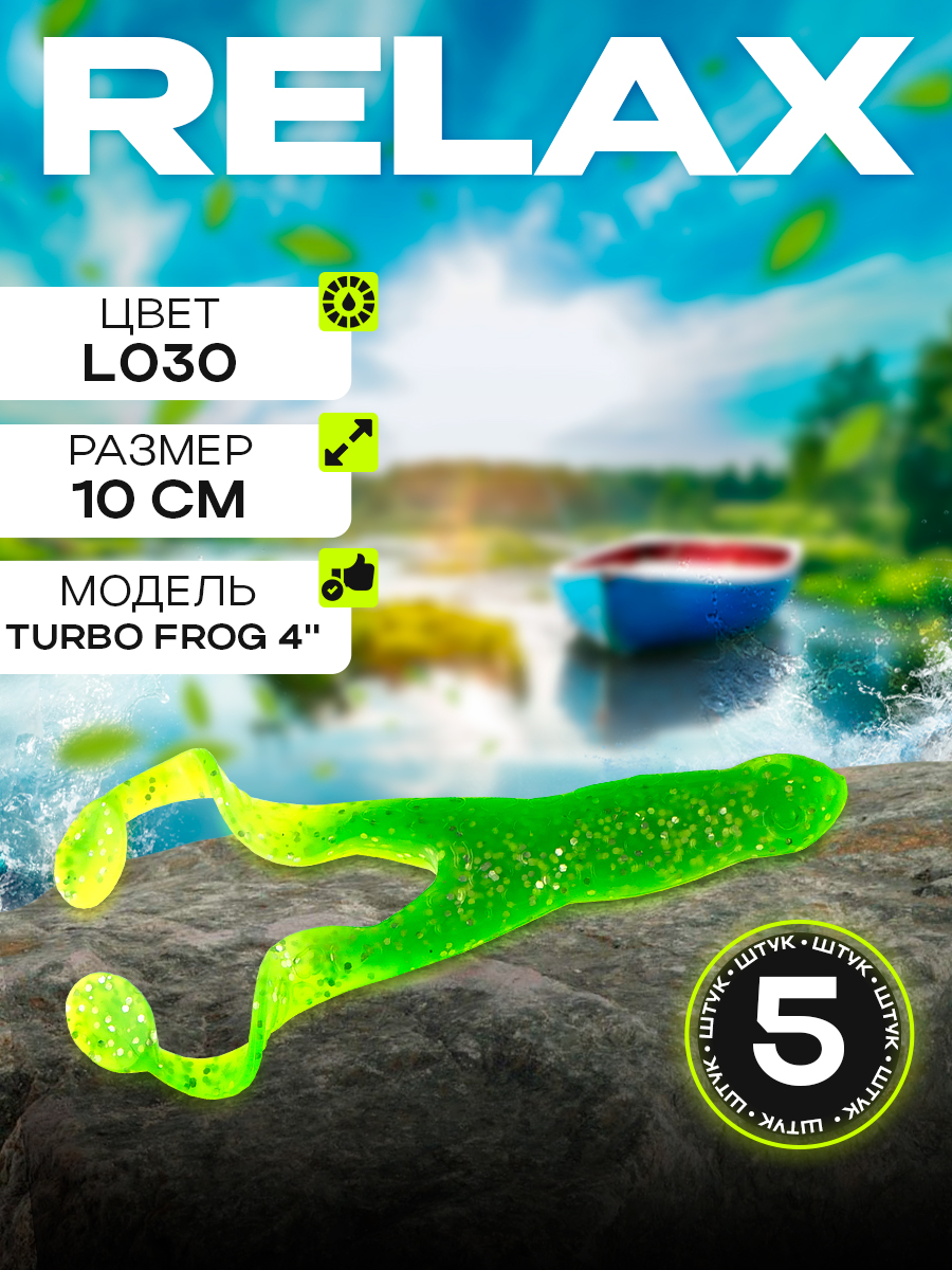 Приманки Relax Turbo Frog (лягушка) 4" 10см цвет L030 (зеленый, с блестками) (5шт) (TF4)