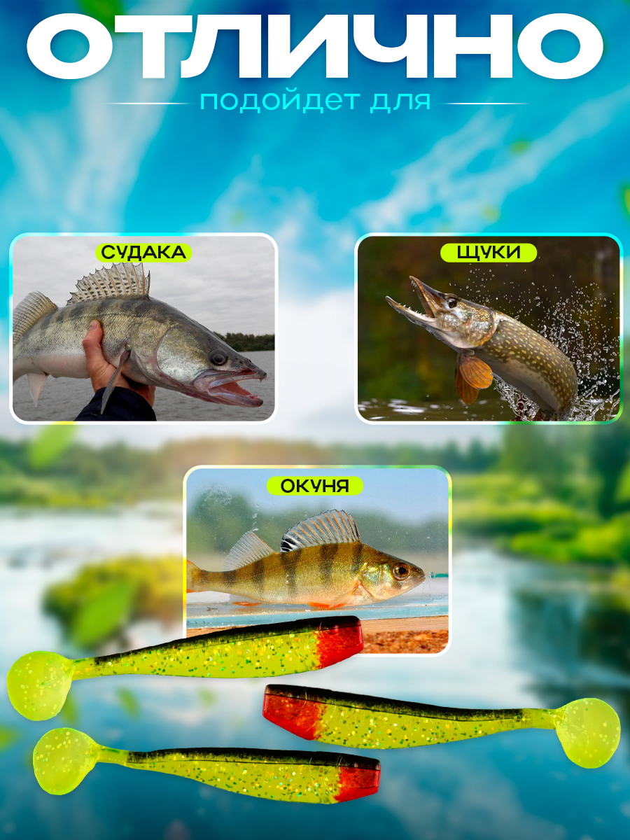 Виброхвосты Relax Kingshad 4" 10см цвет S067 (желтый, черный, красный, прозрачный, с блестками) (10шт) (KS4)