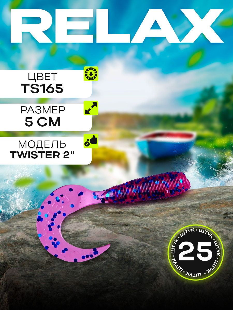 Твистеры Relax 2" 5см цвет TS165 (фиолетовый, синие блески) (25шт) (VR2)