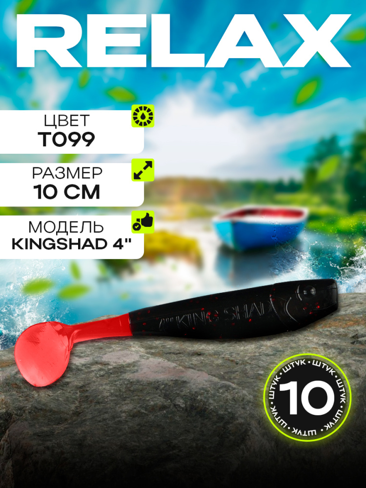 Виброхвосты Relax Kingshad 5" 12,5см цвет L320 (прозрачный, лиловый, синие и красные блестки) (5шт)
