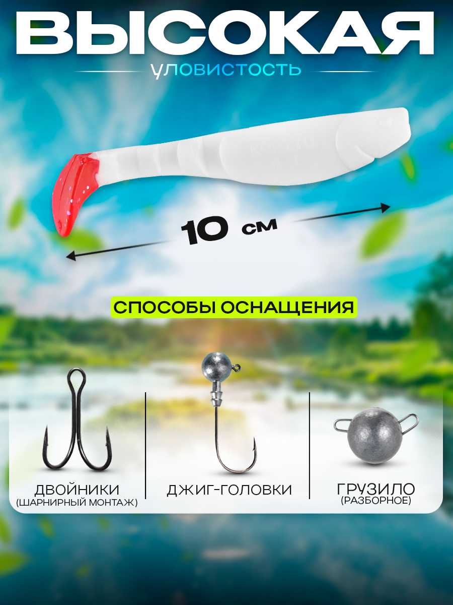 Виброхвосты Relax Kopyto BLS 4L" 10см цвет T002 (белый, красный) (10шт) (BLS4L)
