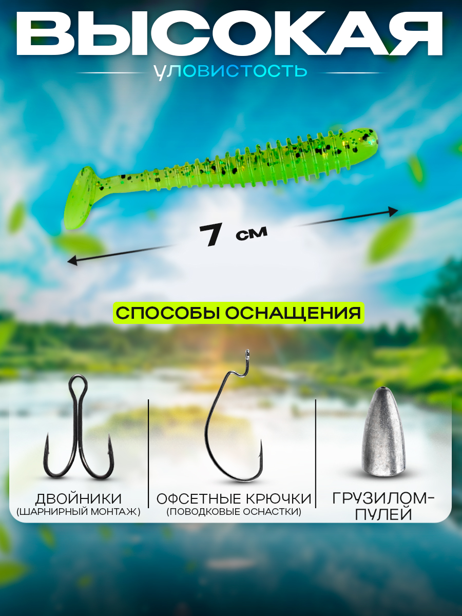 Виброхвосты Relax Texas 2.5" 7см цвет L140 (зеленый, с блестками) (10шт) (TX25)