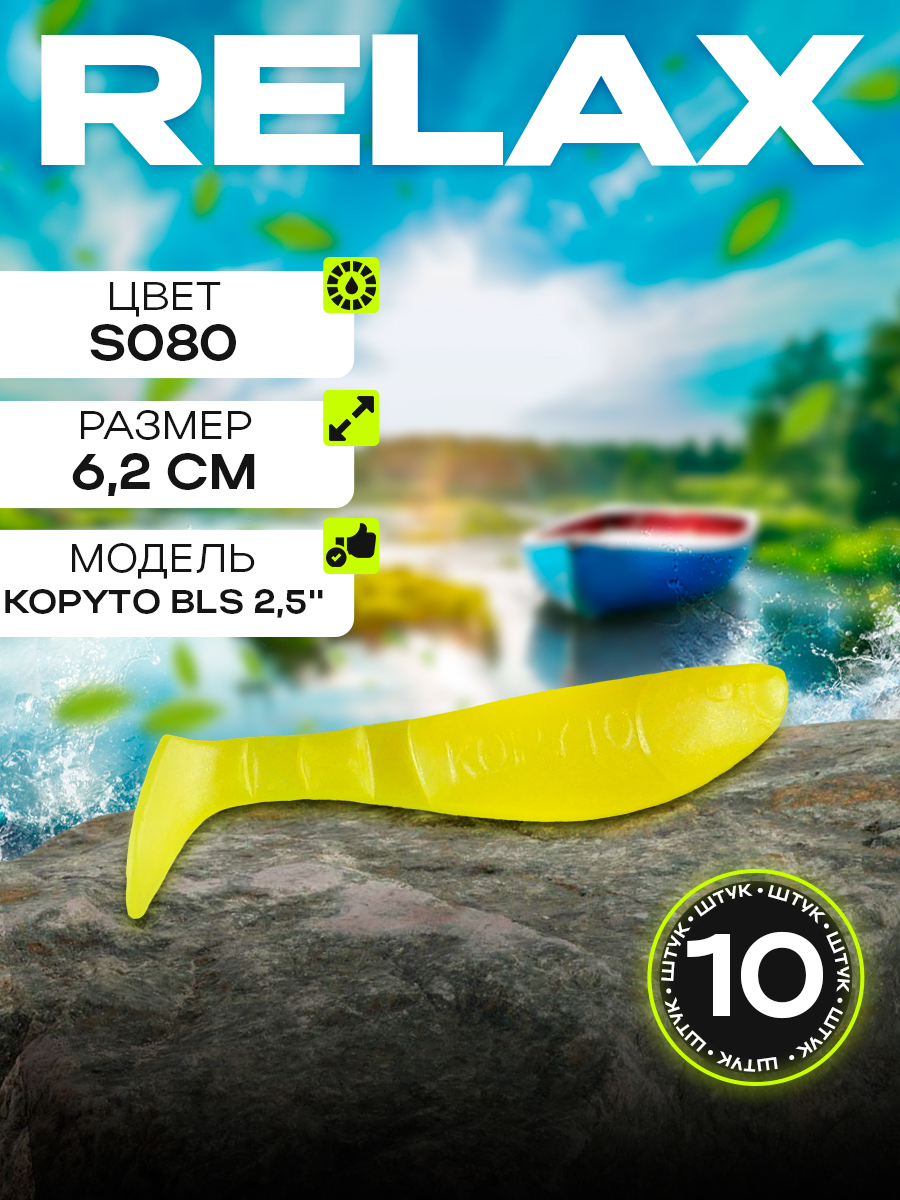 Виброхвосты Relax Kopyto BLS 2.5" 6,2см цвет S080 (желтый) (10шт) (BLS25)