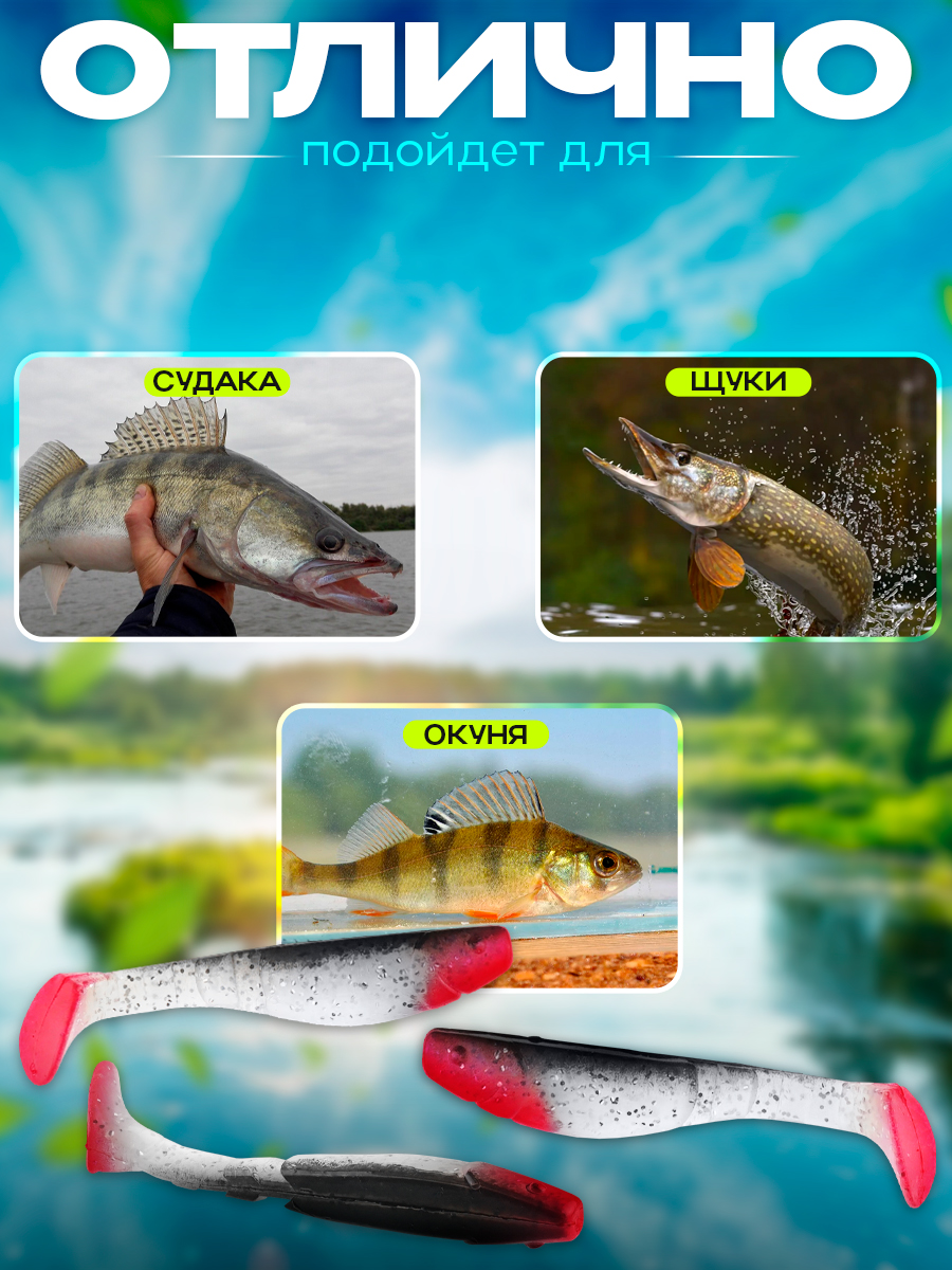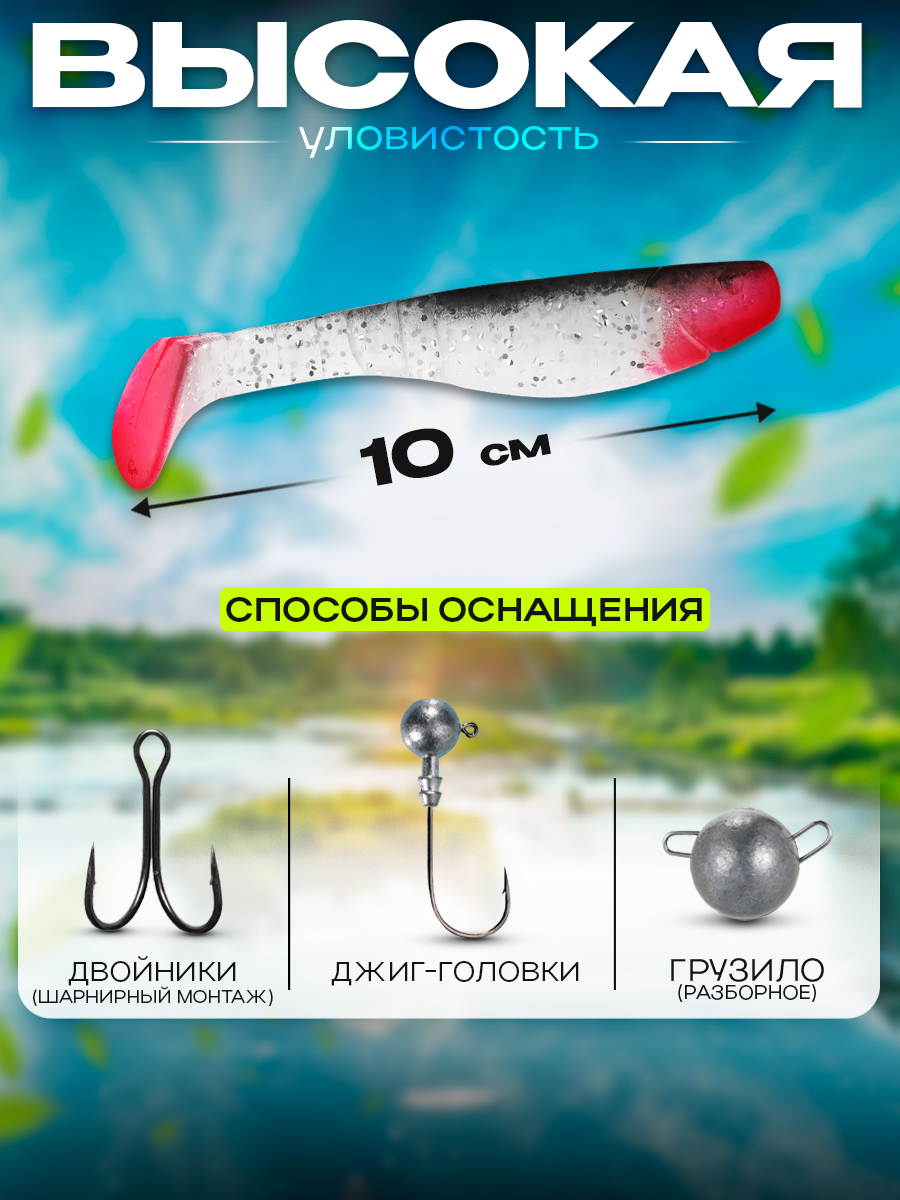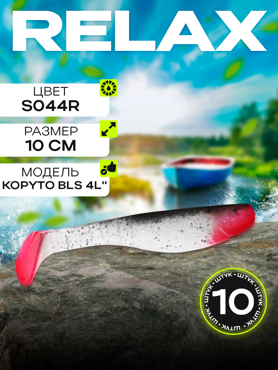 Виброхвосты Relax Kopyto BLS 4L" 10см цвет S044R (перламутровый, черный, красный, с блестками) (10шт) (BLS4L)