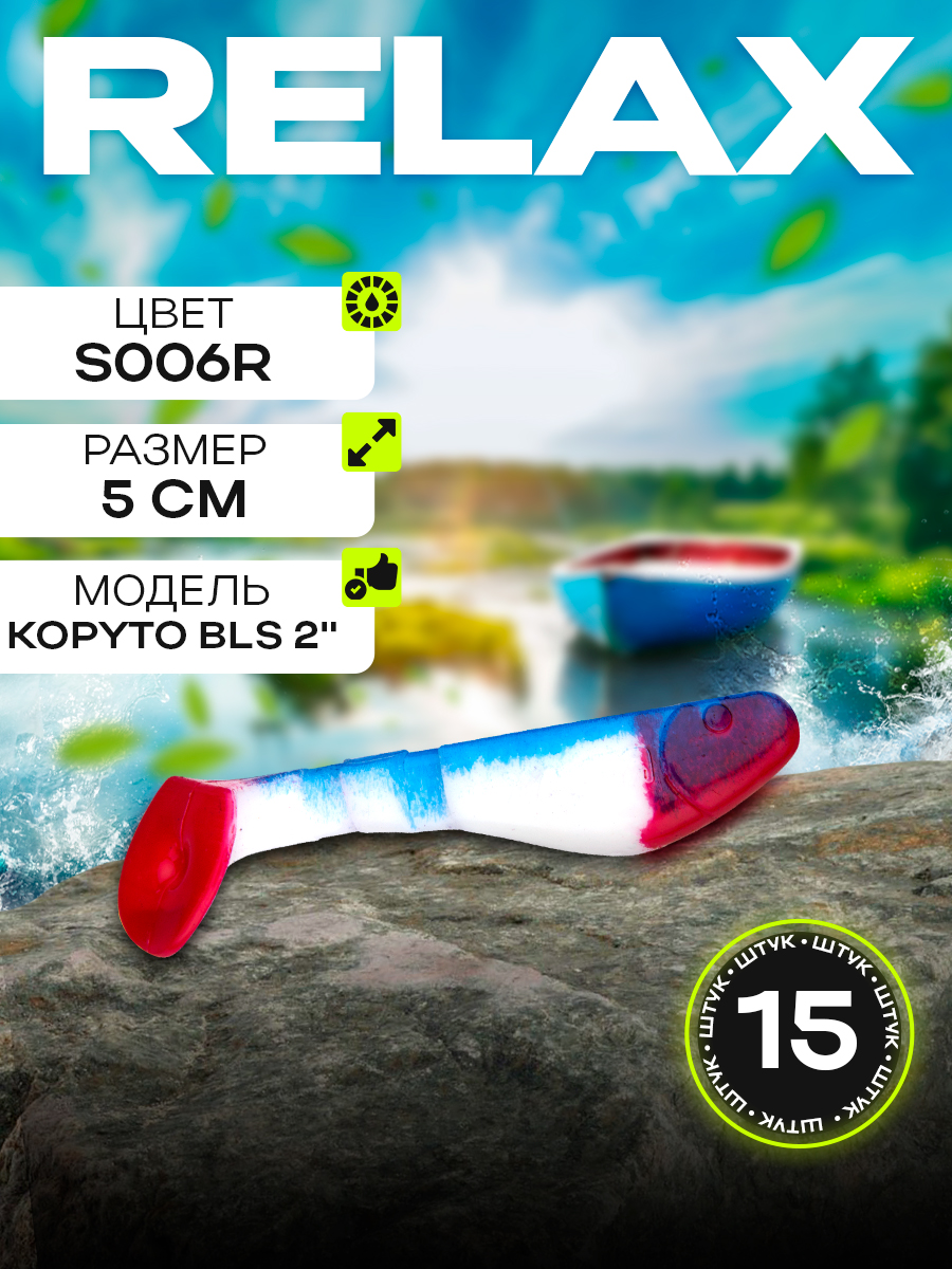 Виброхвосты Relax Kopyto BLS 2" 5см цвет S006R (белый, синий, красный) (15шт) (BLS2)