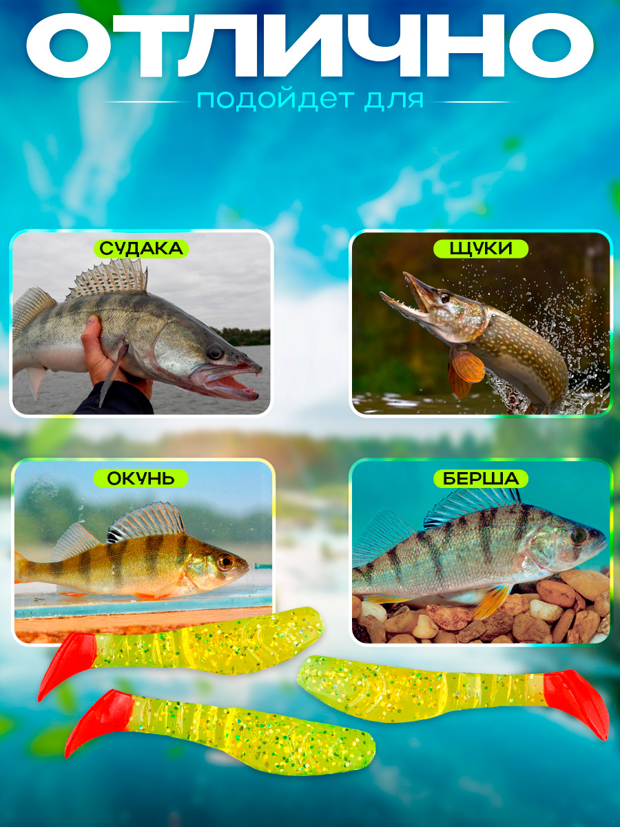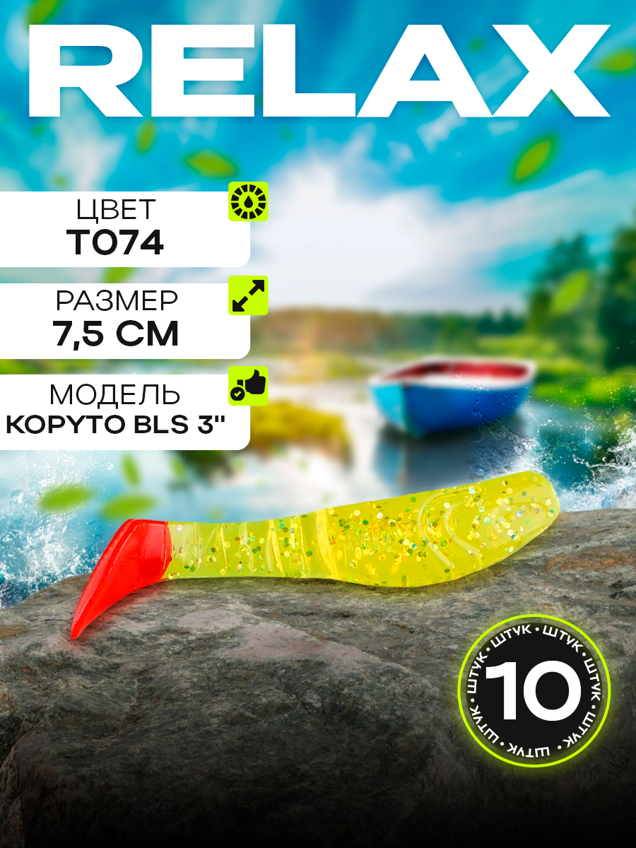 Виброхвосты Relax Kopyto BLS 3" 7,5см цвет T074 (желтый, красный, с блестками) (10шт) (BLS3)