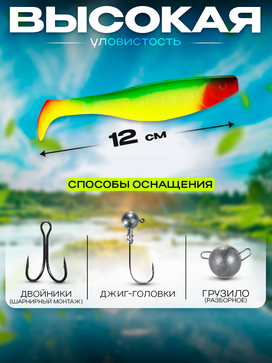 Виброхвосты Relax Kopyto BLS 5" 12см цвет S058 (желтый, зеленый, красный)R (5шт) (BLS5)