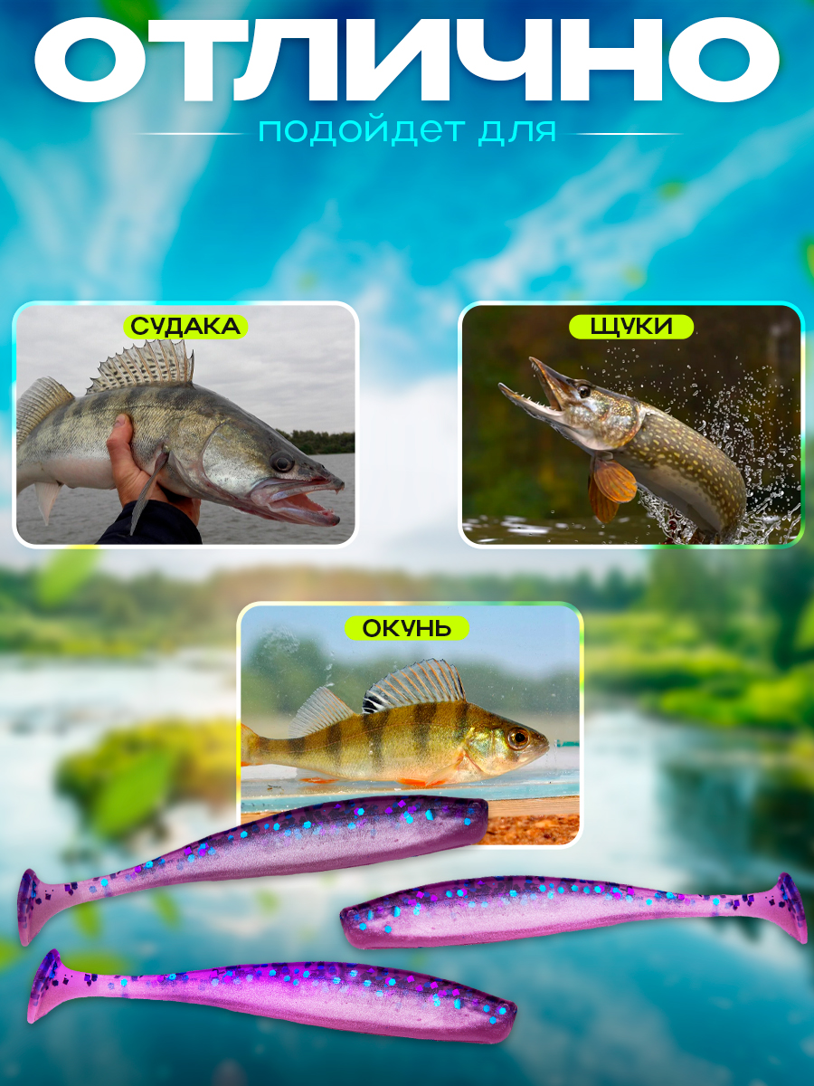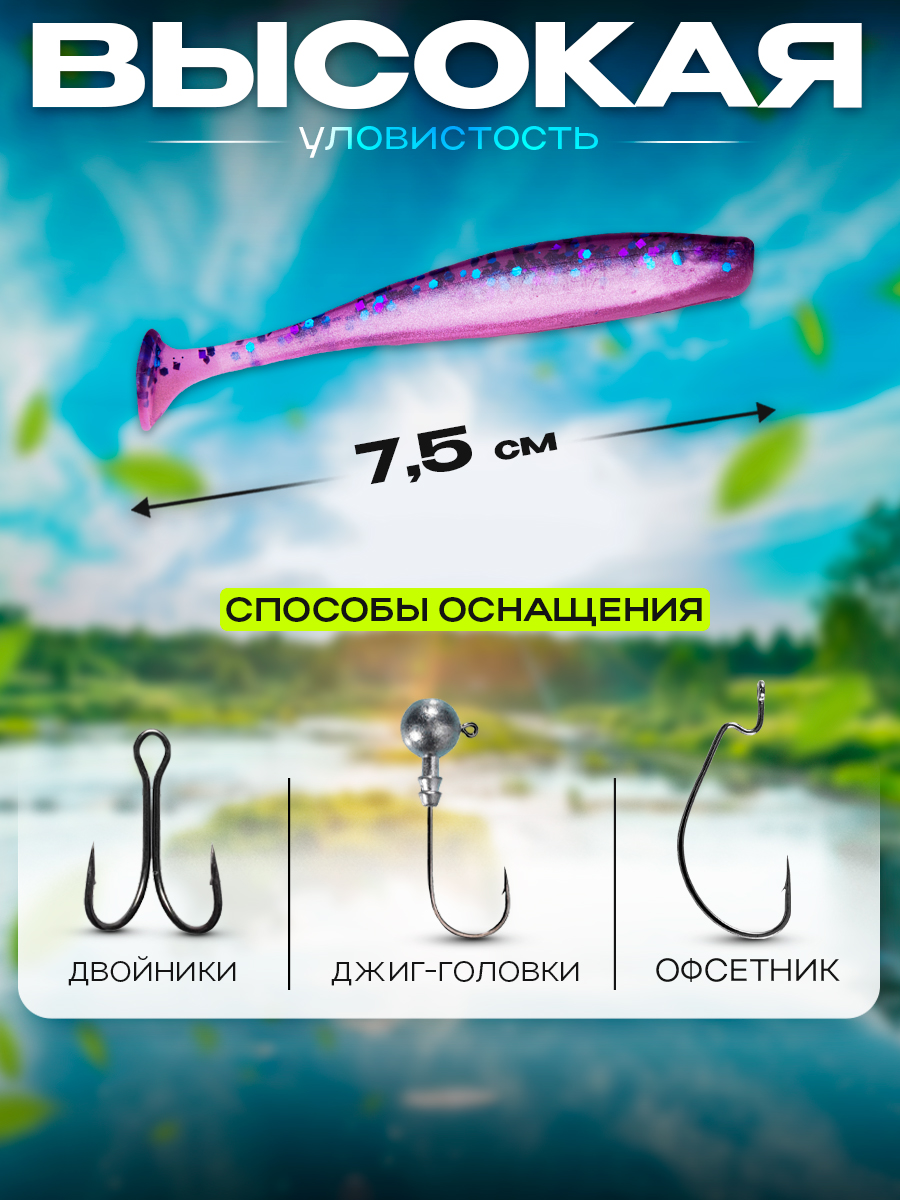 Виброхвосты Relax Bass 3" 7,5см цвет L653 (лиловый, синие блестки) (10шт) (BAS3)